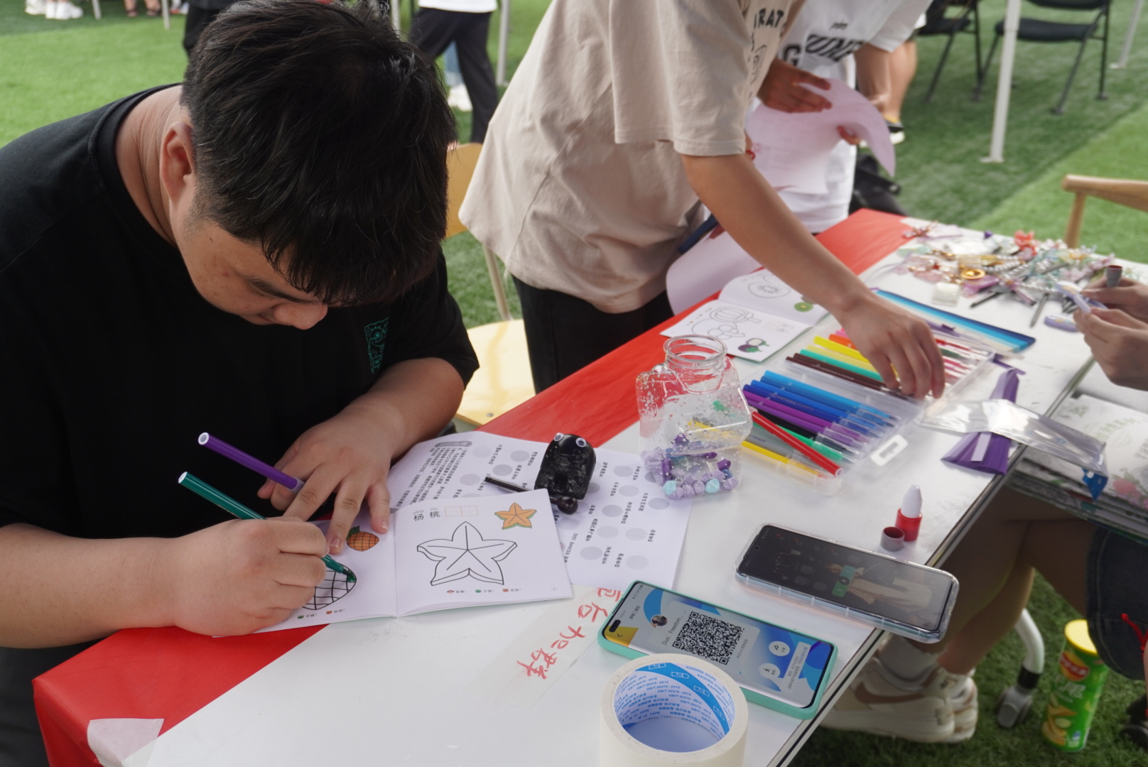 下午首先进行的是社团游园会。现场,七大类学生社团展现出了各自独特的文化与魅力,他们精心布置展位、设置丰富多彩的活动,向来参与游园会的同学全方位、多角度地展示社团特色。并且各个社团摊位都准备了有趣的游戏互动,同学们都积极参与,集章兑礼,现场氛围热闹非凡。