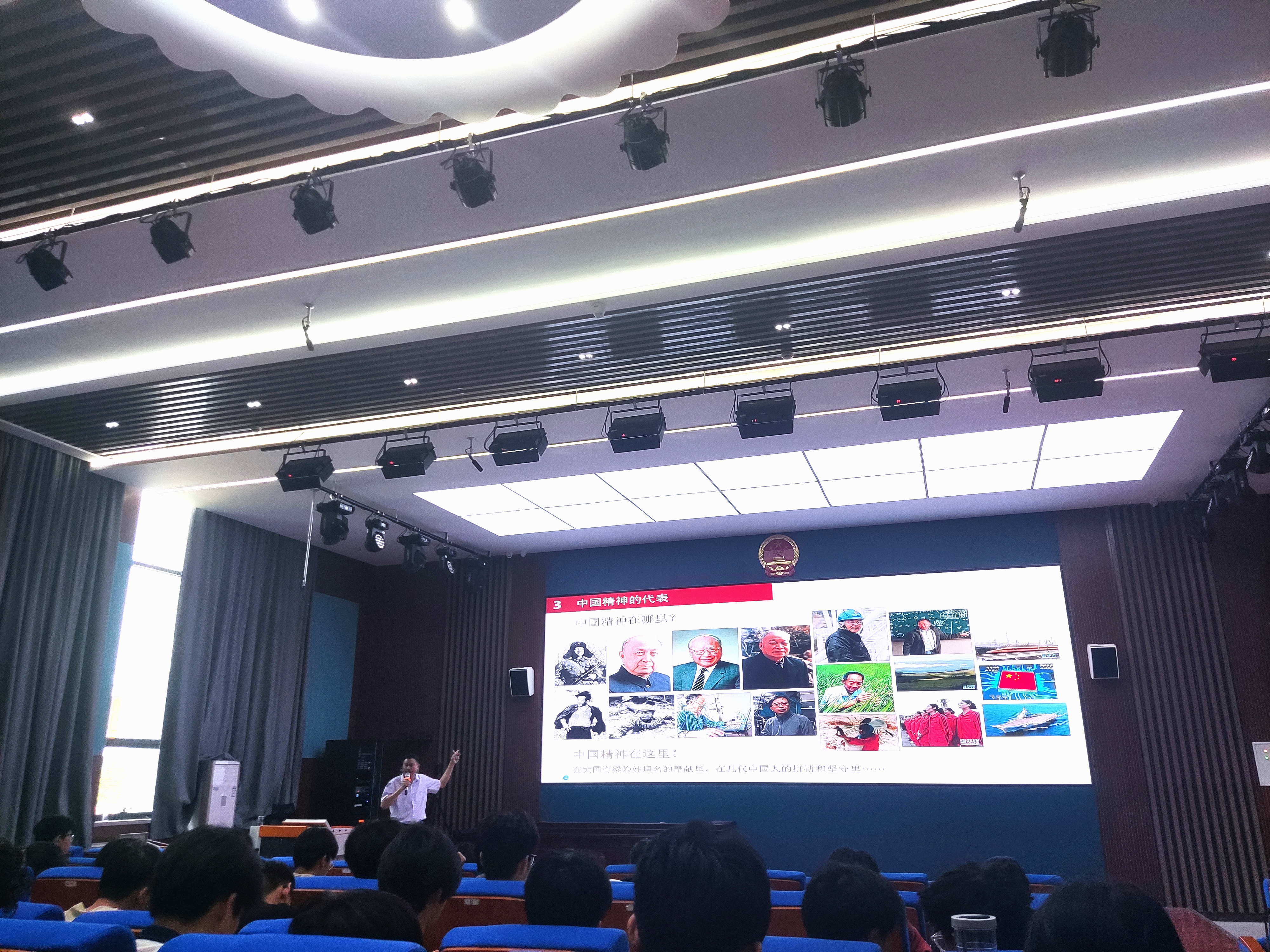 主讲人基础教育学院施敏发副教授主要围绕“何为中国精神”“为什么要弘扬中国精神”“中国精神的代表”“如何弘扬中国精神,挺起新时代中国精神的脊梁”等四个方面,结合高校立德树人根本任务、传承中华优秀传统文化、坚持马克思主义指导思想及社会主义意识形态等一一展开,娓娓道来。主讲人联系自身学业及工作实际,鼓舞和号召在场师生积极培育践行社会主义核心价值观,以时代精神激活中华优秀传统文化的生命力,推进中华优秀传统文化创造性转化和创新性发展,增强做中国人的志气、骨气、底气,给人启迪,催人奋进。