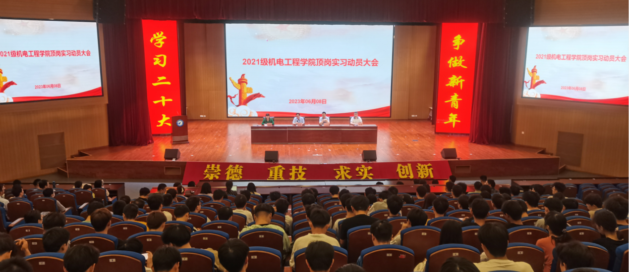 6月9日下午,机电工程学院在大学生活动中心召开2021级学生岗位实习动员大会,会议采用线下与线上直播方式同步进行。学院党政领导班子成员、全体教职工、辅导员及学生参加会议,大会由机电工程学院院长胡木林主持。