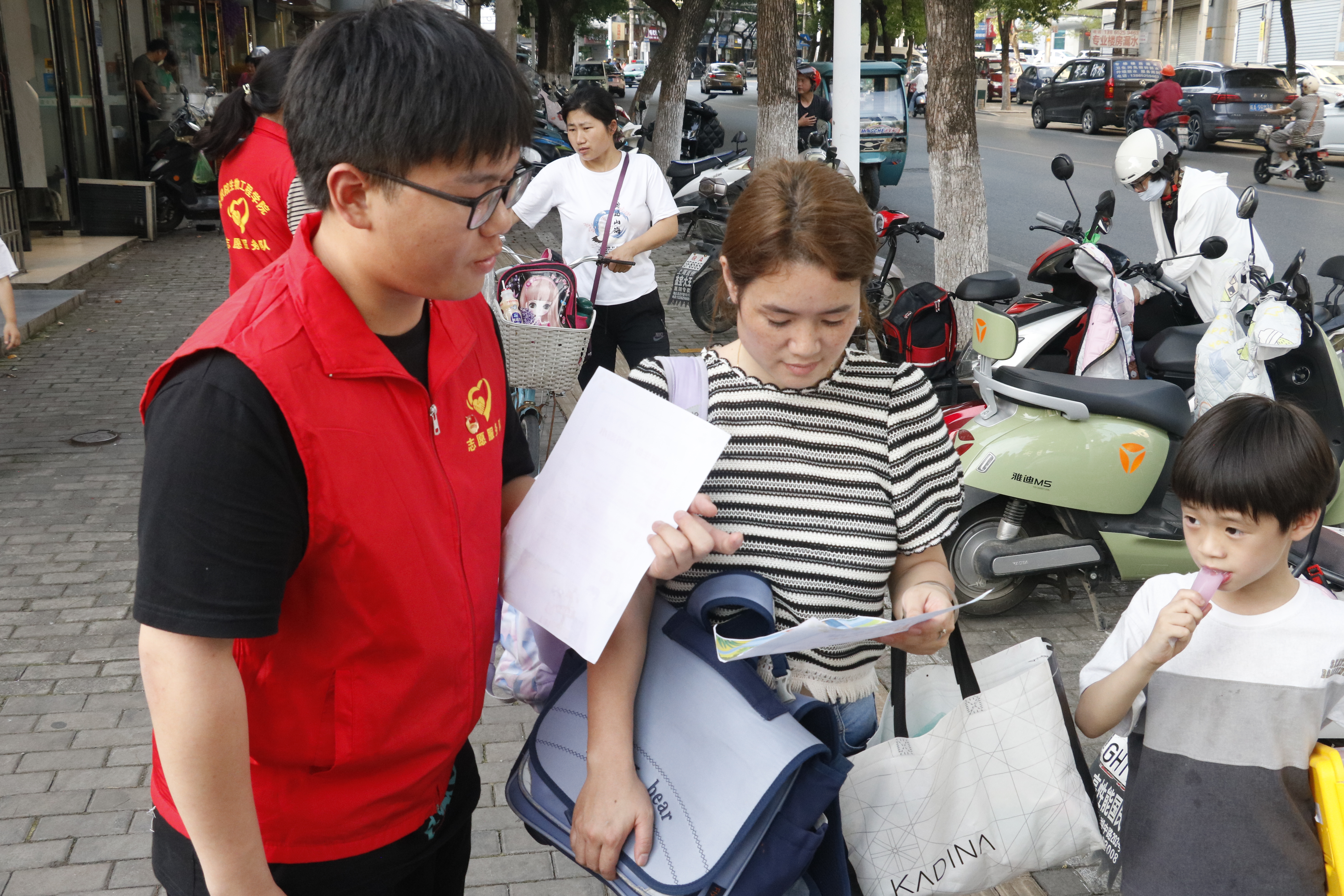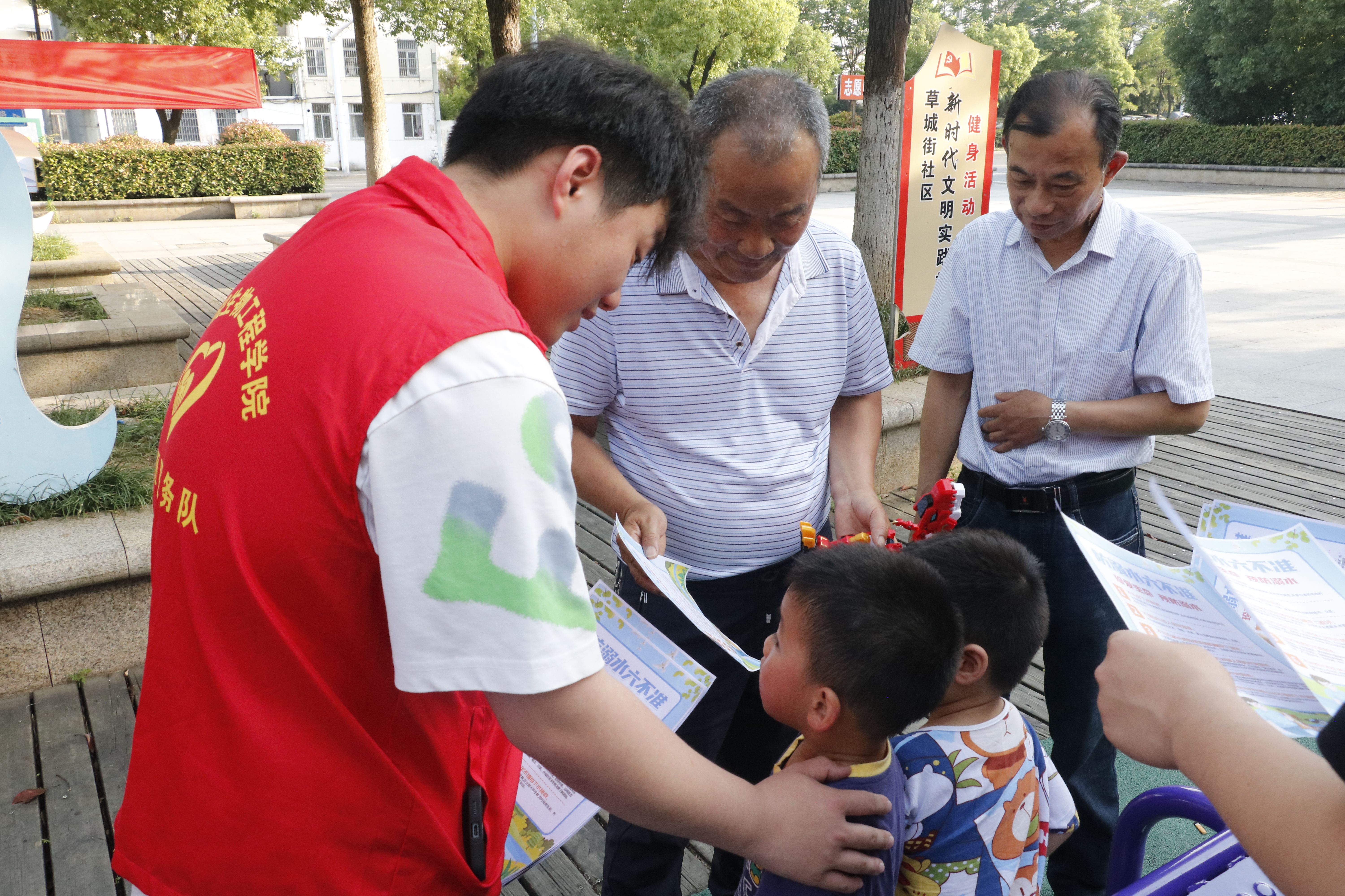 座谈结束后,AC米兰中文官方网站学生会团支部14名学生志愿者联合草城街社区、益仁社工、凤凰山街道社工站走进城北小学附近的志愿广场共同展开“防溺水”宣传工作。正值放学时段,学生志愿者们给家长、小学生们发放“防溺水”宣传彩页,为他们细致讲解防溺水的注意事项,提高其安全防范意识。在高温的考验之下,志愿者们虽然满头大汗,但是态度积极热情,耐心诚恳。