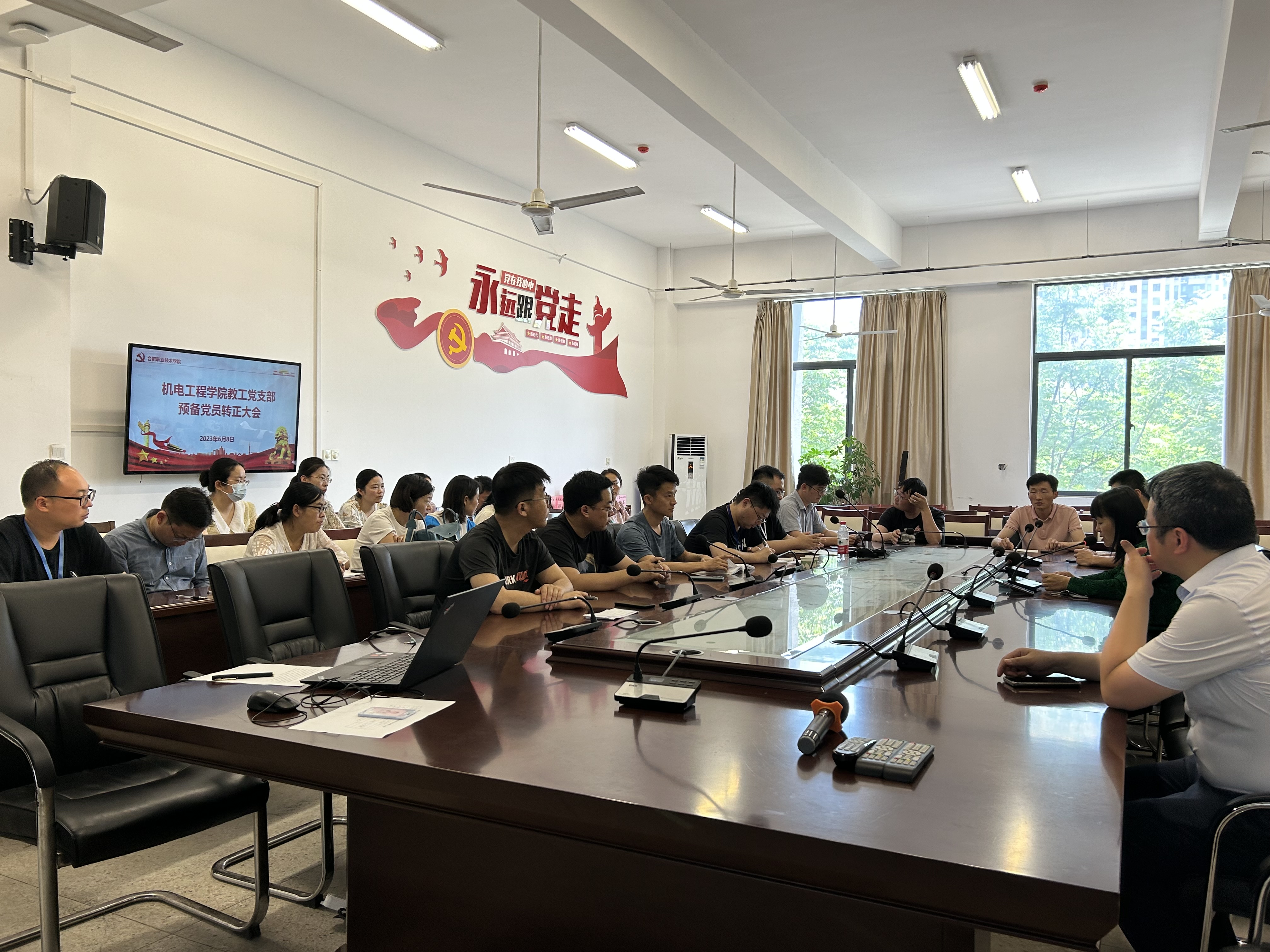 6月8日下午,机电工程学院教工党支部于机电楼二楼会议室召开预备党员转正会议,就预备党员罗家浒、徐敏同志的转正事宜进行讨论,会议由教工党支部书记孙新梅同志主持。