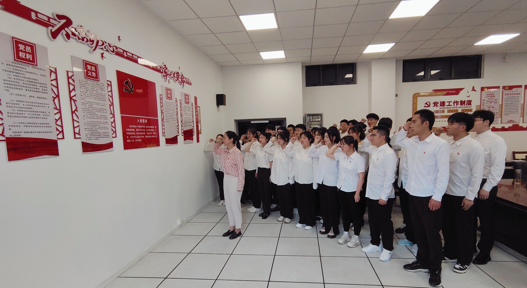 党总支书记佘海月向40名按期转正的同志表示热烈的祝贺并寄予殷切的希望和要求:一是要牢记入党初心,坚决拥护党的各项方针政策,走向新征程;二要脚踏实地,进而有为,行稳致远,继续求知;三要建功立业不负青春,坚定不移的朝着目标前进,勇毅前行。