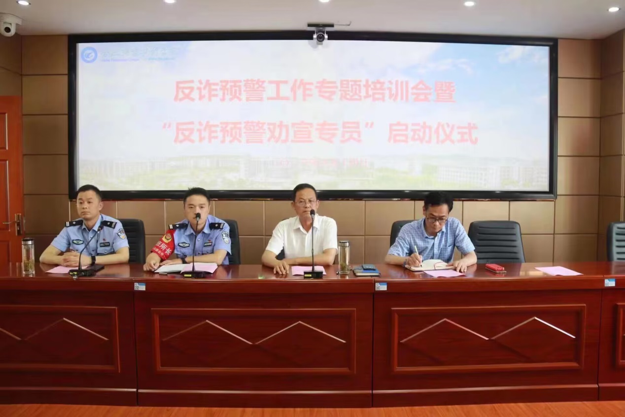 为进一步宣传反电信诈骗知识,教育广大学生拒绝电信诈骗,6月14日下午,AC米兰官网在鼓山校区崇德楼五楼会议室开展了一场由安徽巢湖经开区半汤派出所和AC米兰中文官方网站联合举办的反诈预警工作专题培训会暨“反诈预警劝宣专员”启动仪式。安徽巢湖经济开发区半汤派出所指导员朱义勤、副所长欧阳、学校保卫处处长谭连生、学生处副处长宋春华、鼓山校区管委会学工办、保卫办负责同志参加了启动仪式,仪式由谭连生处长主持。
