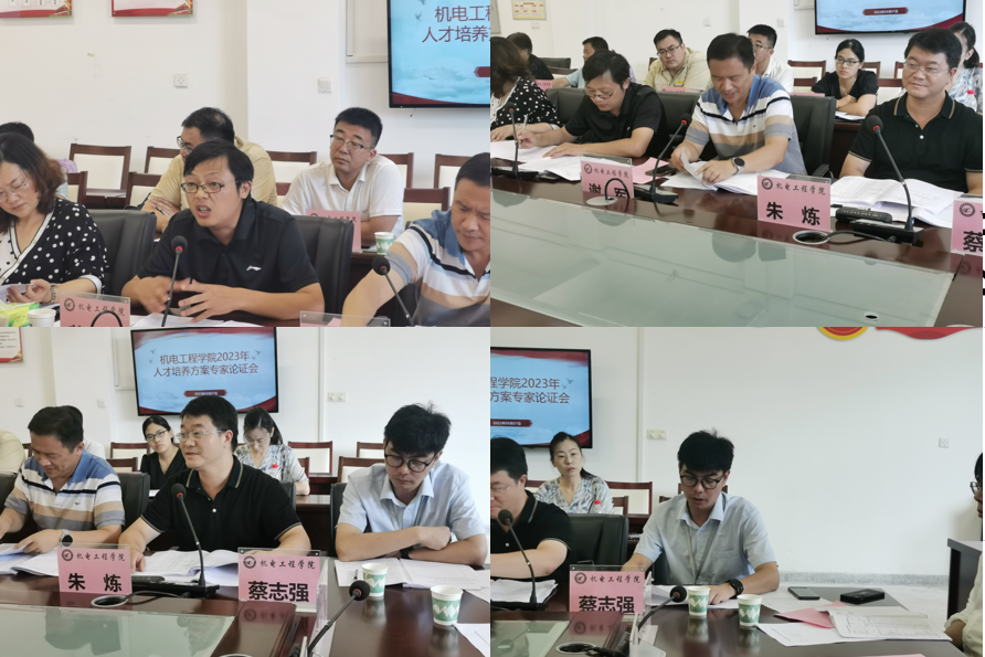 8月7日下午,机电工程学院在机电楼二楼会议室召开了2023级人才培养方案论证会。本次会议邀请了校外专家,合作企业工程师,毕业(实习)学生代表和校内专家共同论证,旨在进一步落实立德树人的根本任务,加快学院高水平专业(群)建设,精准强化高素质技术技能型人才培养。会议由机电学院院长胡木林主持,学校教务处处长窦红平教师,校外高职院校专家4人,合作企业专家3人,毕业(实习)学生代表2人,校内专家6人及各专业带头人参加会议。