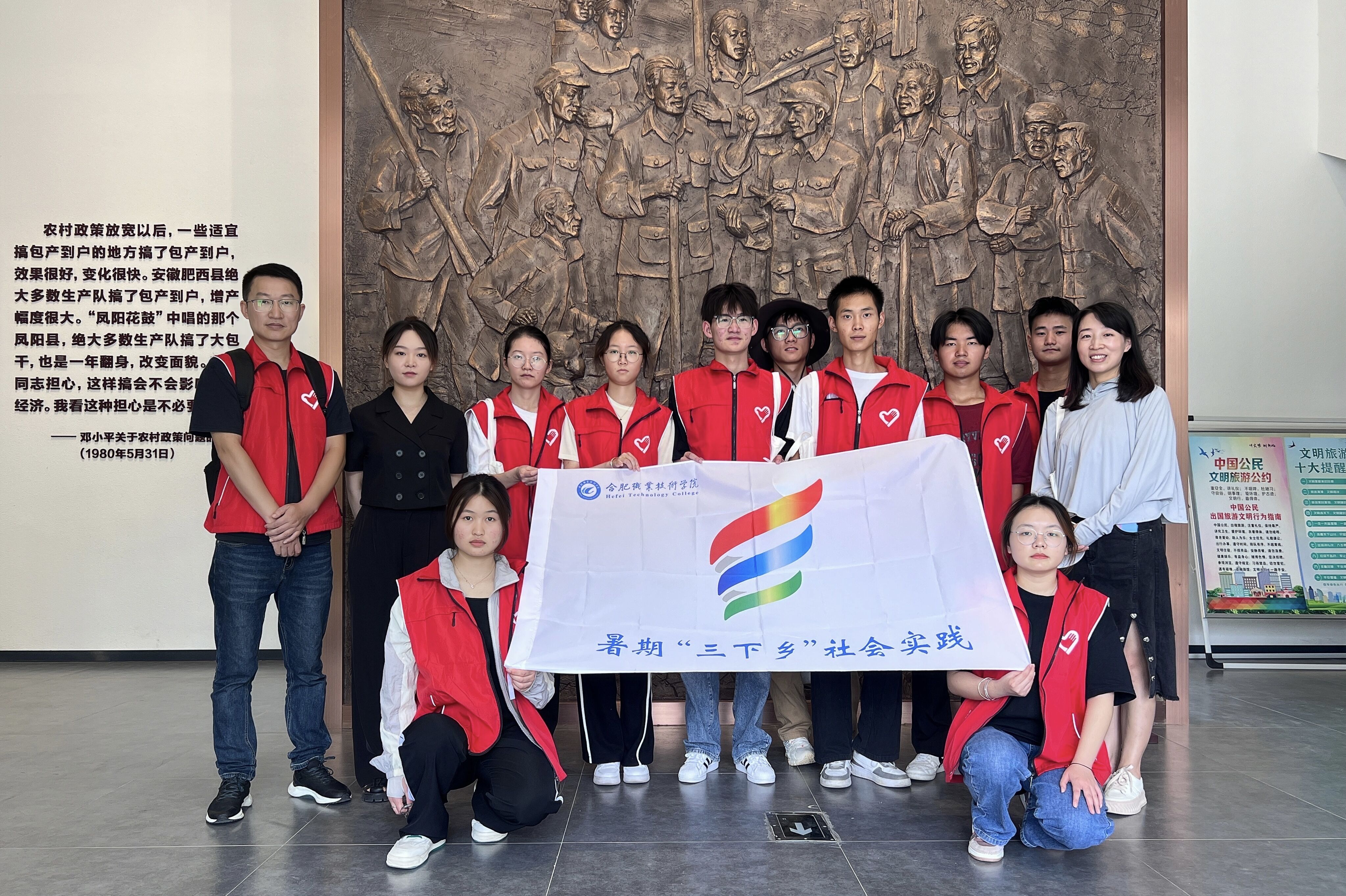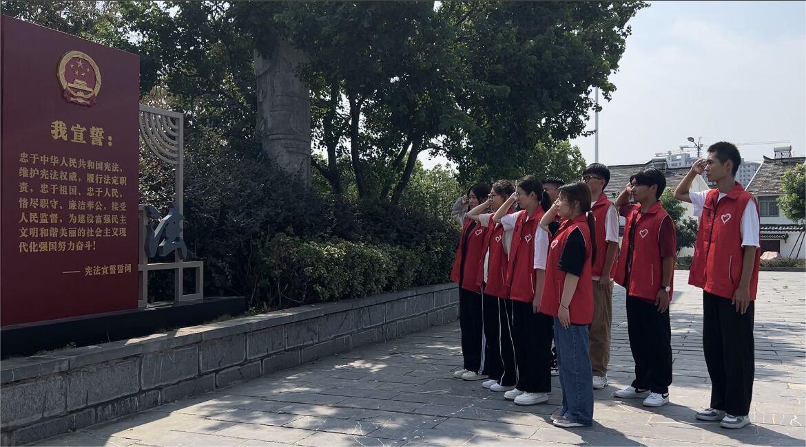 下午,实践团队进行了实地走访,来到了合肥市法治乡村教育基地。在这里,团队成员庄严宣誓,乡村振兴,法治同行,深刻感悟自治、法治、德治相结合的乡村治理新格局。
