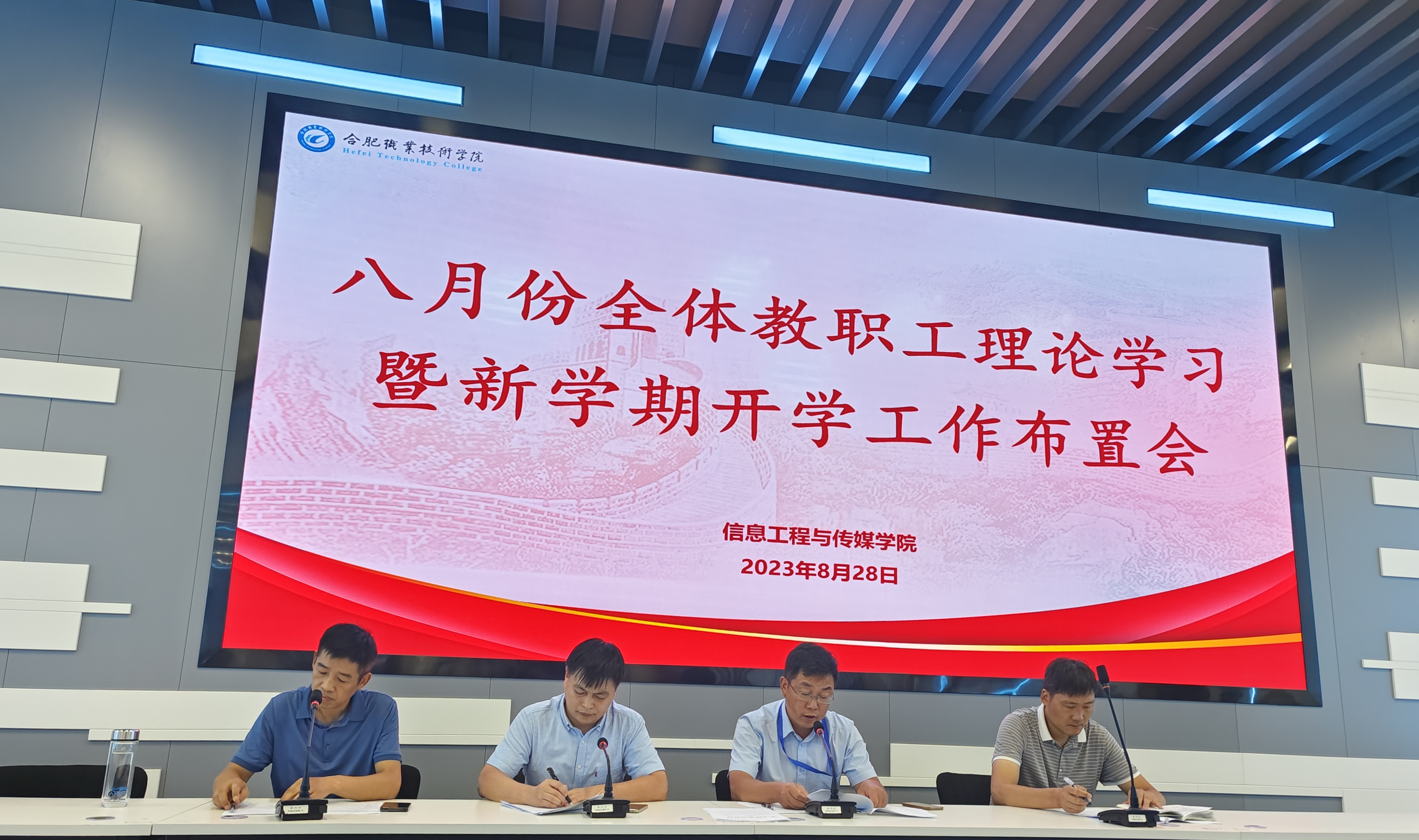 立足新起点,聚力谋发展。8月28日上午,信息工程与传媒学院在轨道楼4楼召开全体教职工八月份全体教职工理论学习暨新学期开学工作布置会。会议分理论学习和新学期工作布置两个阶段,由学院党总支副书记刘泽发主持,全体教职工参加。