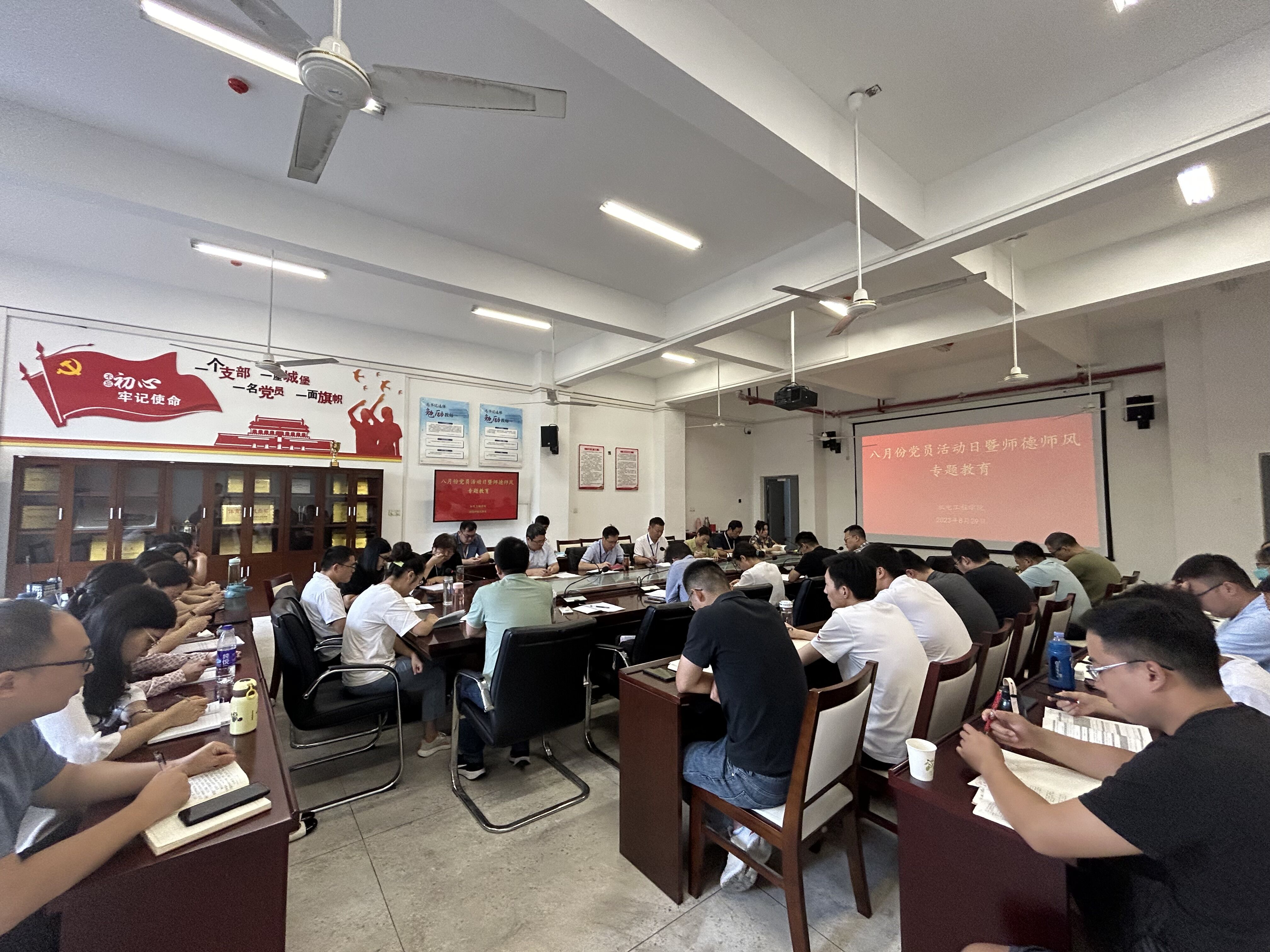 8月29日上午, 机电工程学院在机电楼二楼会议室组织召开八月份党员活动日暨师德师风专题学习活动,学院全体教职工参加,会议由党总支副书记丁迎春(主持工作)主持。