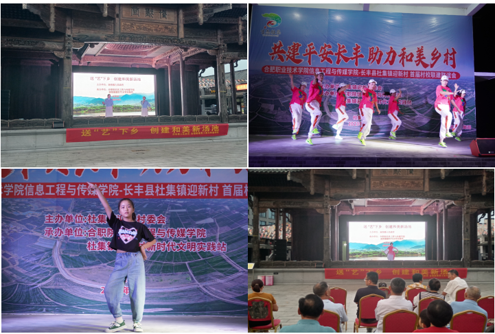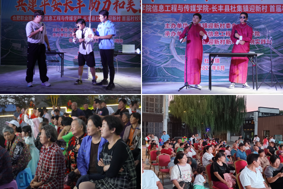 8月28日和30日,信息工程与传媒学院送“文艺”下乡团队分别与长丰县杜集镇迎新村、庐江县汤池镇联合举办了两场规模盛大的村校联谊晚会,现场人头攒动,气氛热烈,学院老师、同学通过网络观看直播。