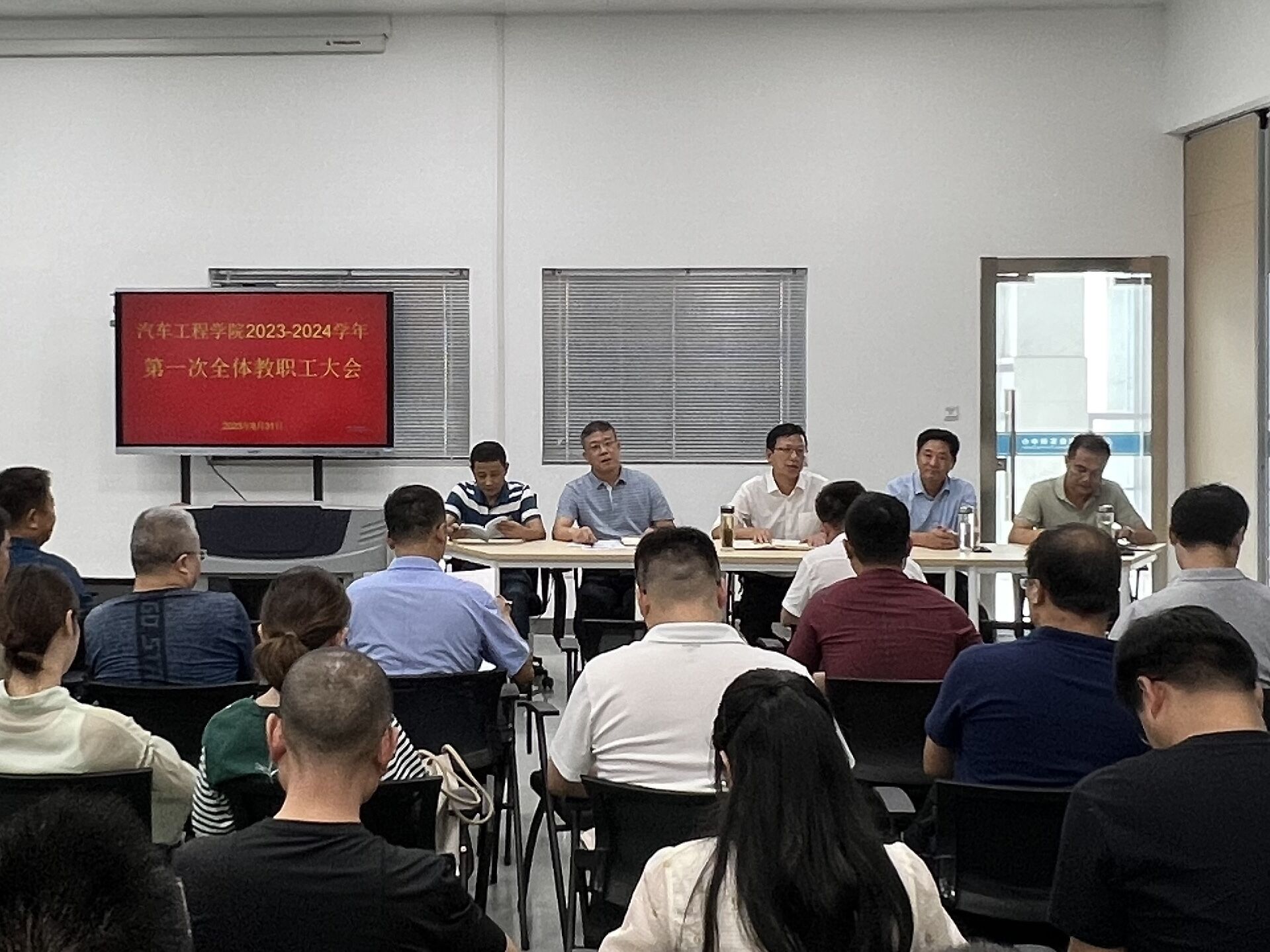 8月31日,汽车工程学院召开2023-2024学年度第一次全体教职工大会,旨在总结过去一年的工作成果,分析当前发展形势,规划未来的发展方向。会议由学校党委委员、办公室主任、学院党总支书记王海同志主持,汽车工程学院院长许鹏、汽车工程学院督导员章炳林、副书记刘靖、副院长伍东升以及全体教职工参加了会议。