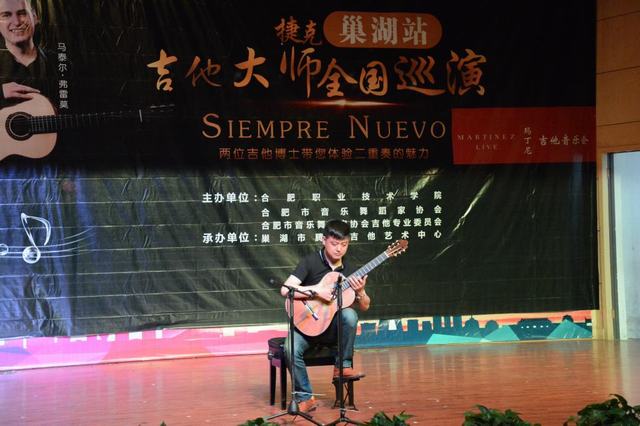 5月5日晚,由我院和合肥市吉他专业委员会联合主办的捷克吉他大师全国巡演——捷克二重奏(巢湖站)”在我院大学生活动中心二楼礼堂上演。院党委副书记胡其云和近五百名师生共同欣赏了这场音乐的盛筵。