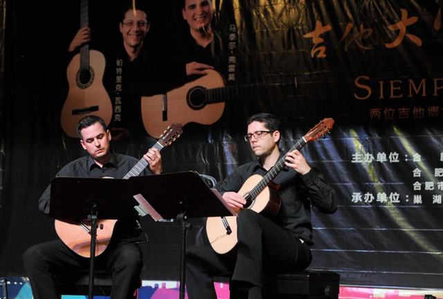 下半场捷克吉他大师马泰尔·弗雷莫,帕特里克·瓦西克演奏了约翰·道兰《两首鲁特琴二重奏》、安东尼·罗耶尔《E小调二重奏》等,优美的旋律一下子拉近了演奏家与在场每一位观众之间的心灵距离,将整场音乐会推向了高潮。在雷鸣般的掌声中,两位教授意犹未尽地为观众进行了返场演奏。