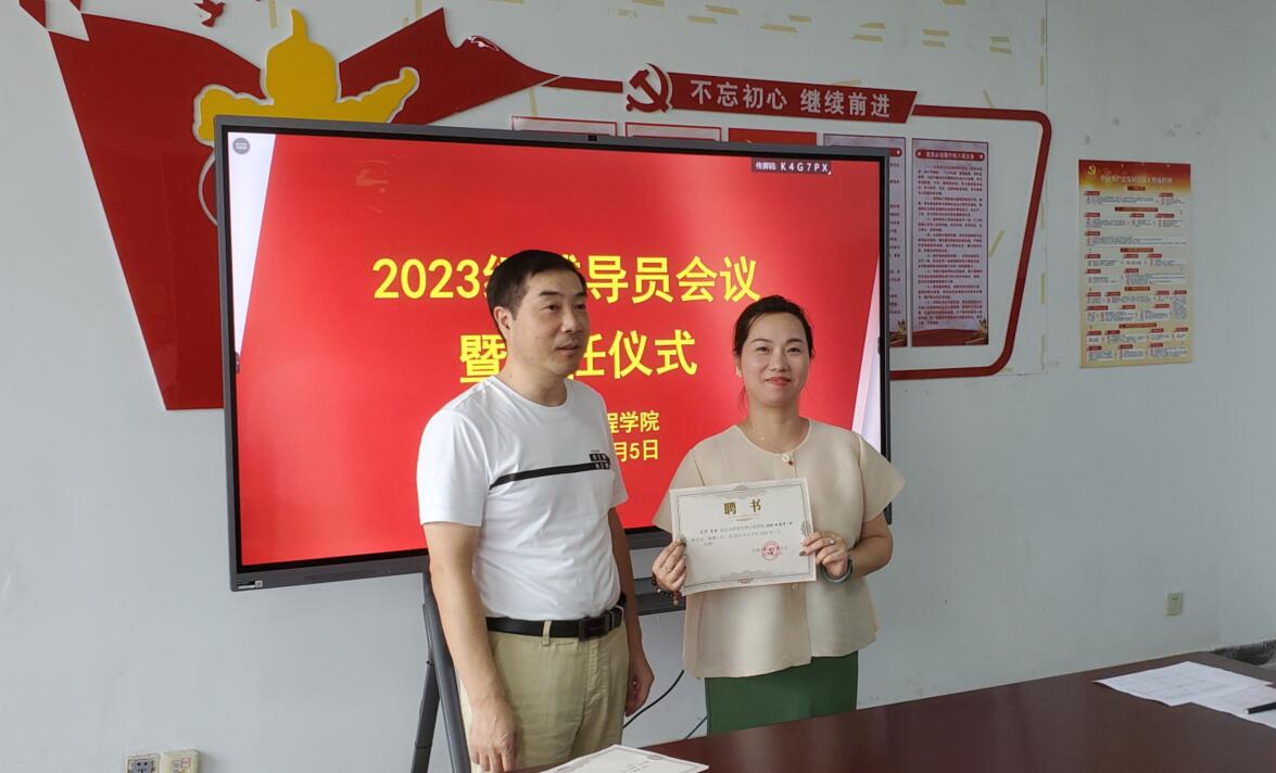 首先,学管办主任季学强宣读了《AC米兰中文官方网站关于聘任郑丹等十名2023级辅导员的决定》,慈龙保为他们颁发了聘书。