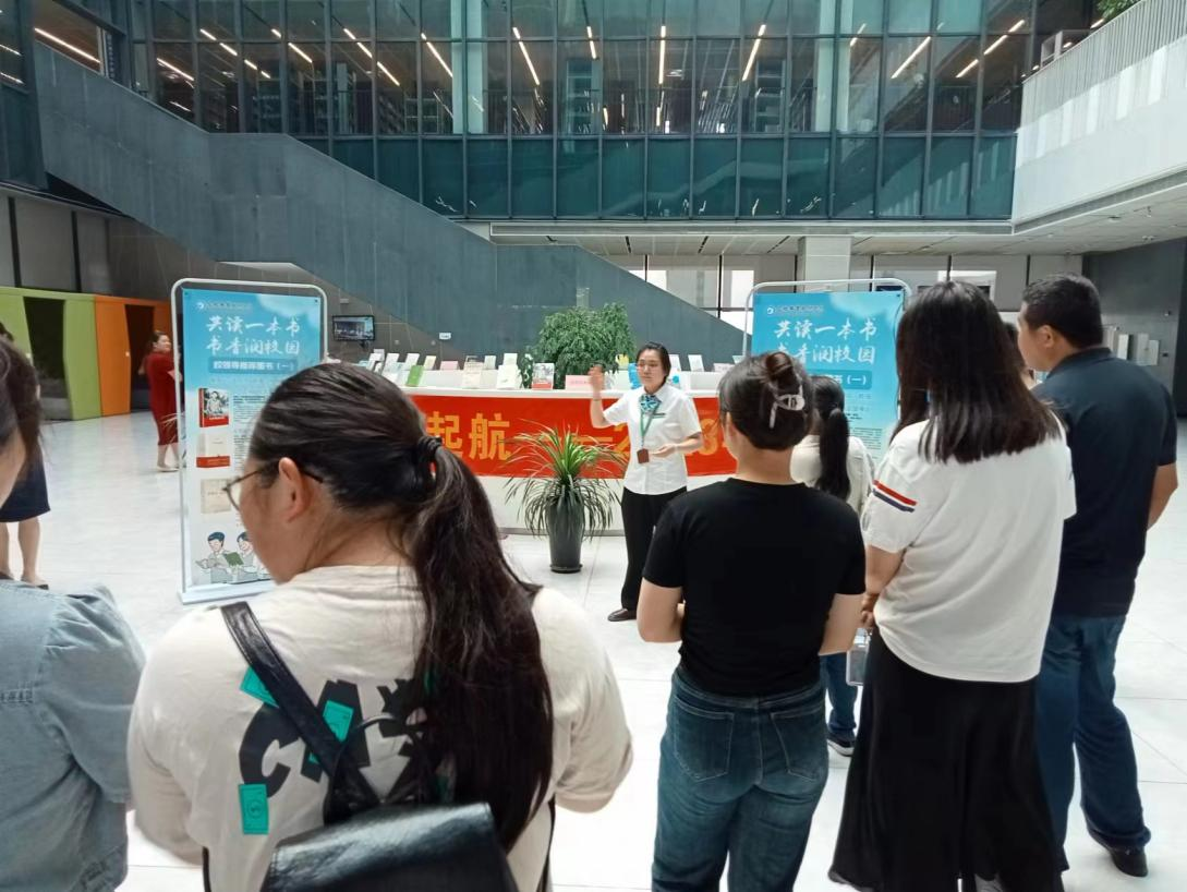 2023年级新生和家长在合职图书馆的工作人员带领下参观了图书馆的内部环境,熟悉图书馆的服务与文化。工作人员帮助学生更好地掌握图书馆的各项基本使用技能,利用图书馆的馆藏资源,提高自身的综合素质。