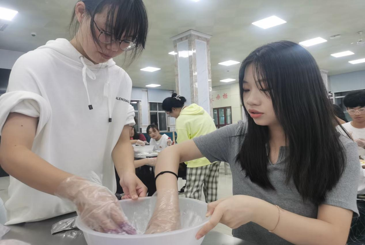 经过揉面皮、包馅料、印花纹、装盒等环节,一个个精美的月饼新鲜出炉。欢声笑语充斥着整个食堂,在这样的活动中,同学们真切感受到传统节日的欢乐氛围和校园生活的丰富多彩。