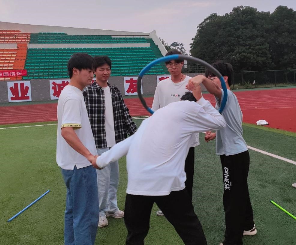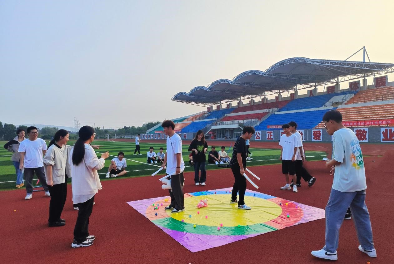 守护玉兔活动——在风雨运动场上,同学们分成三组,轮流扮演“守护者”,守护圆圈中的玉兔,同学们配合得当,很快就拉近了关系,彼此熟悉了起来。
