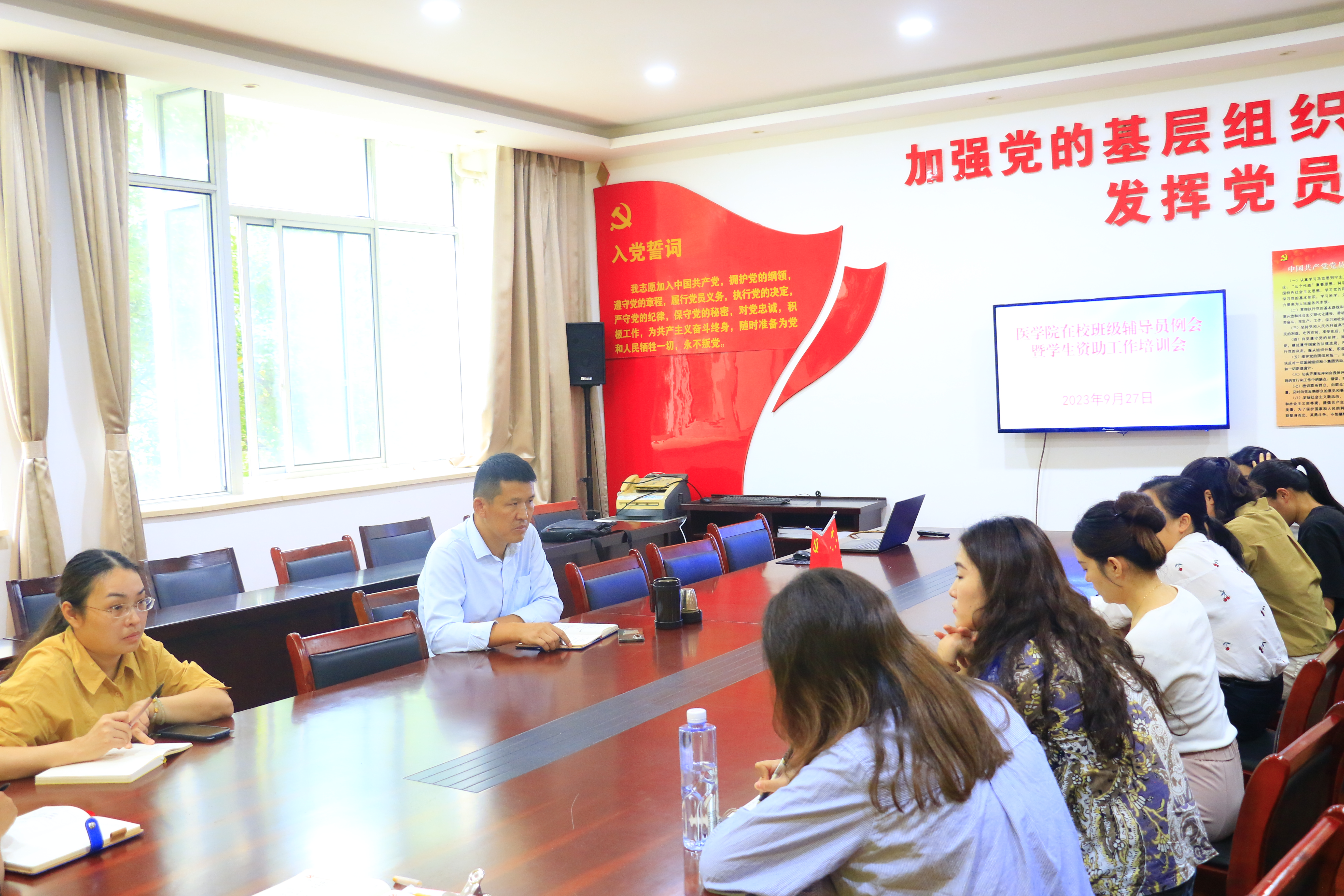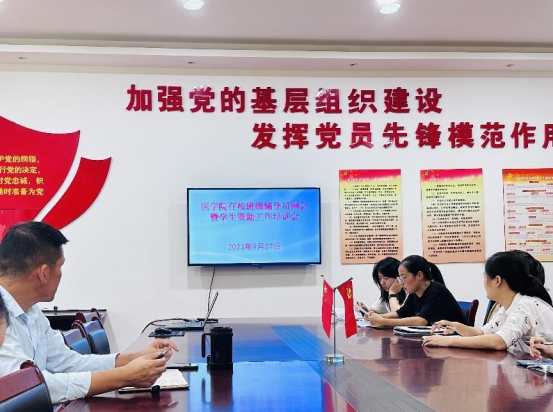 为进一步加强辅导员队伍建设,提升专兼职辅导员工作能力,做好近期学生工作,9月27号下午,医学院在医学楼党员活动室召开全体在校班级辅导员例会暨学生资助工作培训会。会议由学工办主任孙亚萍主持,党总支副书记(主持工作)邹华兵、全体专职辅导员和在校班级辅导员参加了此次会议。