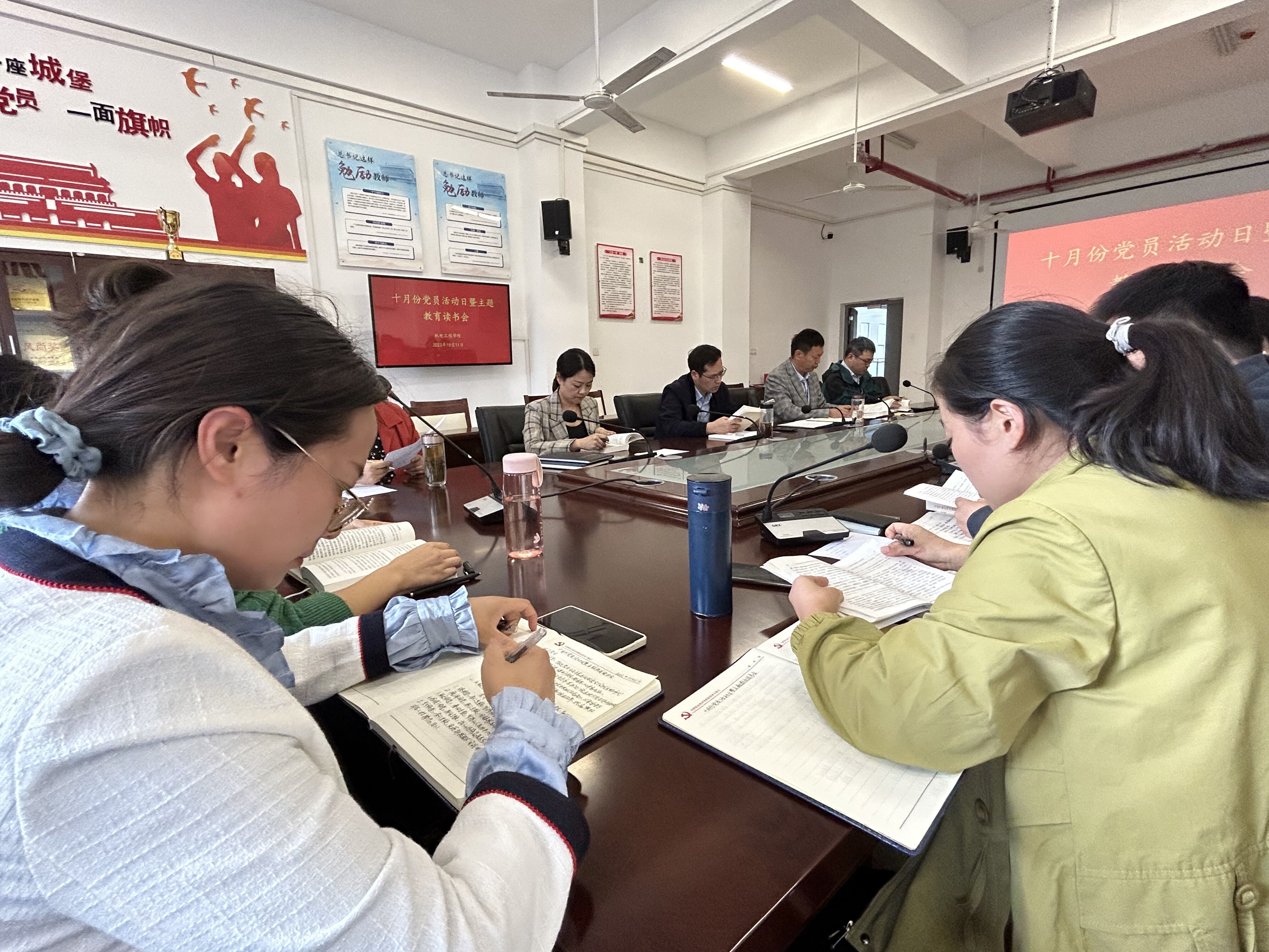 10月11日下午,机电工程学院在机电楼二楼会议室组织召开十月份党员活动日暨主题教育读书会,学院全体教职工参加,会议由党总支副书记丁迎春(主持工作)主持。