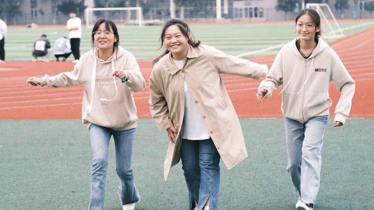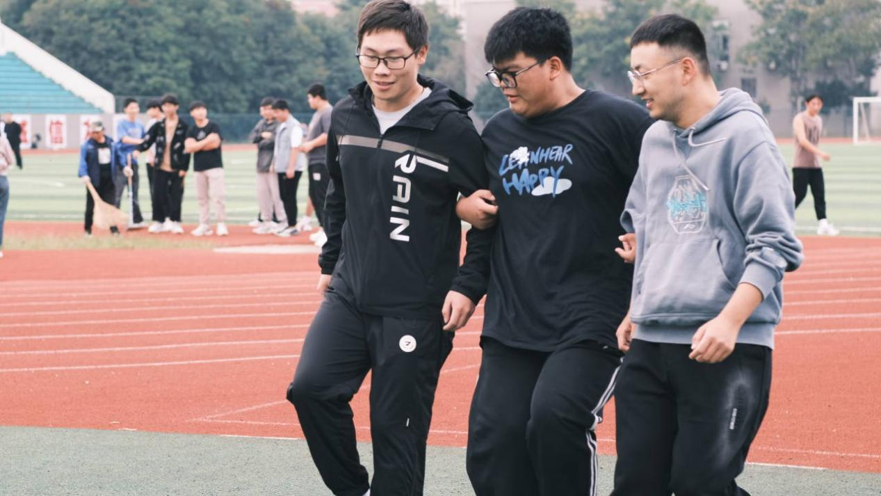 “数数几条腿”“手忙脚乱”在田径场分别开展,手脚并用的他们看起来很滑稽,让围观者捧腹大笑。但在挑战的时候,团队成员目标一致,在“手忙脚乱”中提升了彼此的团队协作能力和沟通执行能力。