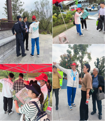此次志愿服务工作从10月10日开始至10月17日结束,为期8天,该院共有49名志愿者参加,分为引导志愿者、路牌指引志愿者和园区志愿者三类。志愿服务地点主要集中在园博会二片区,根据景点的不同,志愿者分为梅花园指引小组、长沙园指引小组、九章驿指引小组、安徽园指引小组、安庆园指引小组、安徽园公交站组、墨子驿指引小组等多个小组,各个小组分工明确为参观园区的游客提供路线指引、园区答疑等服务,共同为游客创造更加舒适的观赏体验。
