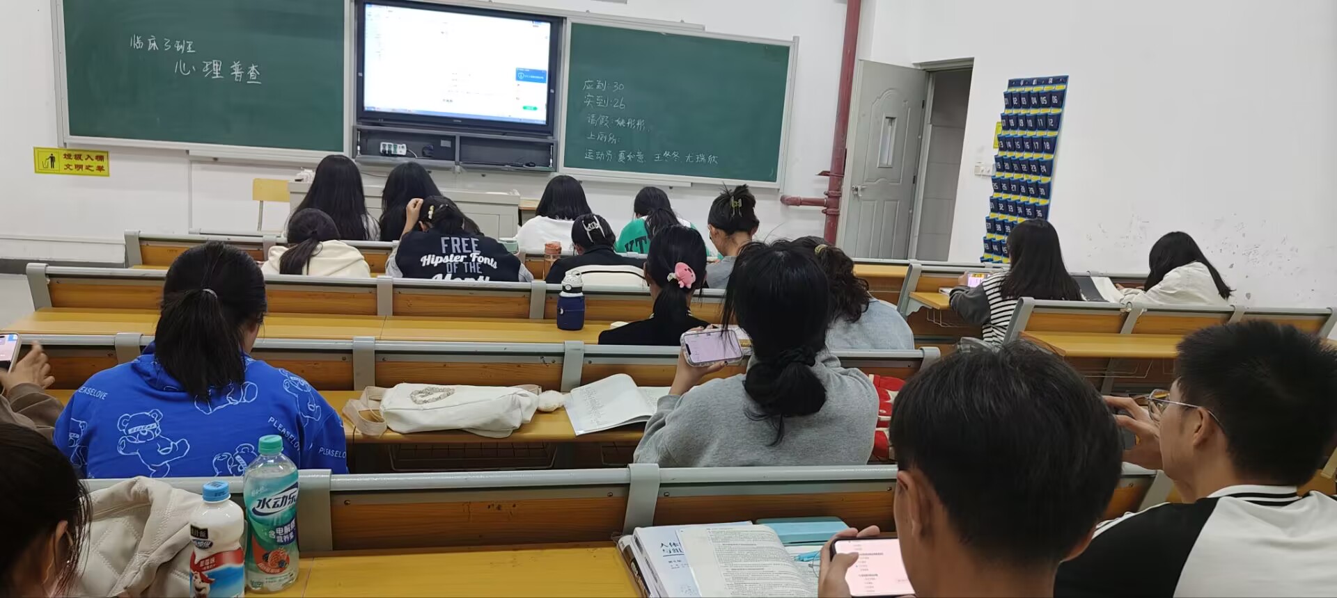 培训之后,张洁还组织全体心理委员学习了《高校学生心理健康管理动态分析与会商指导信息化平台操作手册(学生)》。10月18日晚7点,各班级心理委员组织全体2023级新生在晚自习代管教室进行心理普查集中测试。现场测试工作井然有序,同学们积极参与、态度认真。本着全覆盖、无遗漏原则,医学院2023级全体新生共计682人参加了心理普查测试。