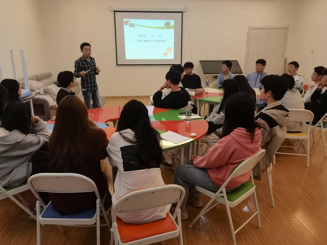 为进一步加强心理委员队伍建设,充分发挥班级心理委员在大学生心理健康教育工作中的重要作用,提高心理委员对常见心理问题的识别能力,10月19日,建筑工程学院在鼓山校区心理中心203活动室组织开展心理委员培训,2023级各班心理委员参加了此次培训,培训由该院李小龙老师担任主讲人。