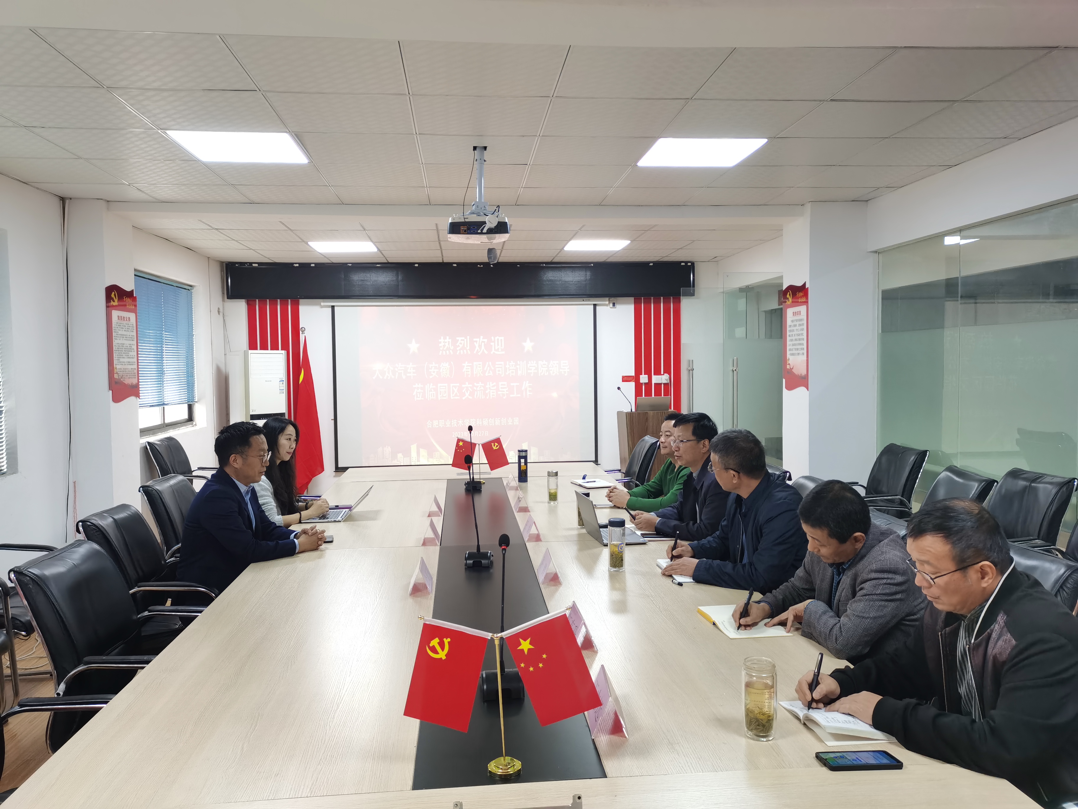 双方就大众汽车南方能力中心、省级双高专业群、省级产业学院、师资队伍培养、“双元制”学生培养、课程开发、课题研究和社会服务等方面合作建设内容进行了具体的沟通与交流。