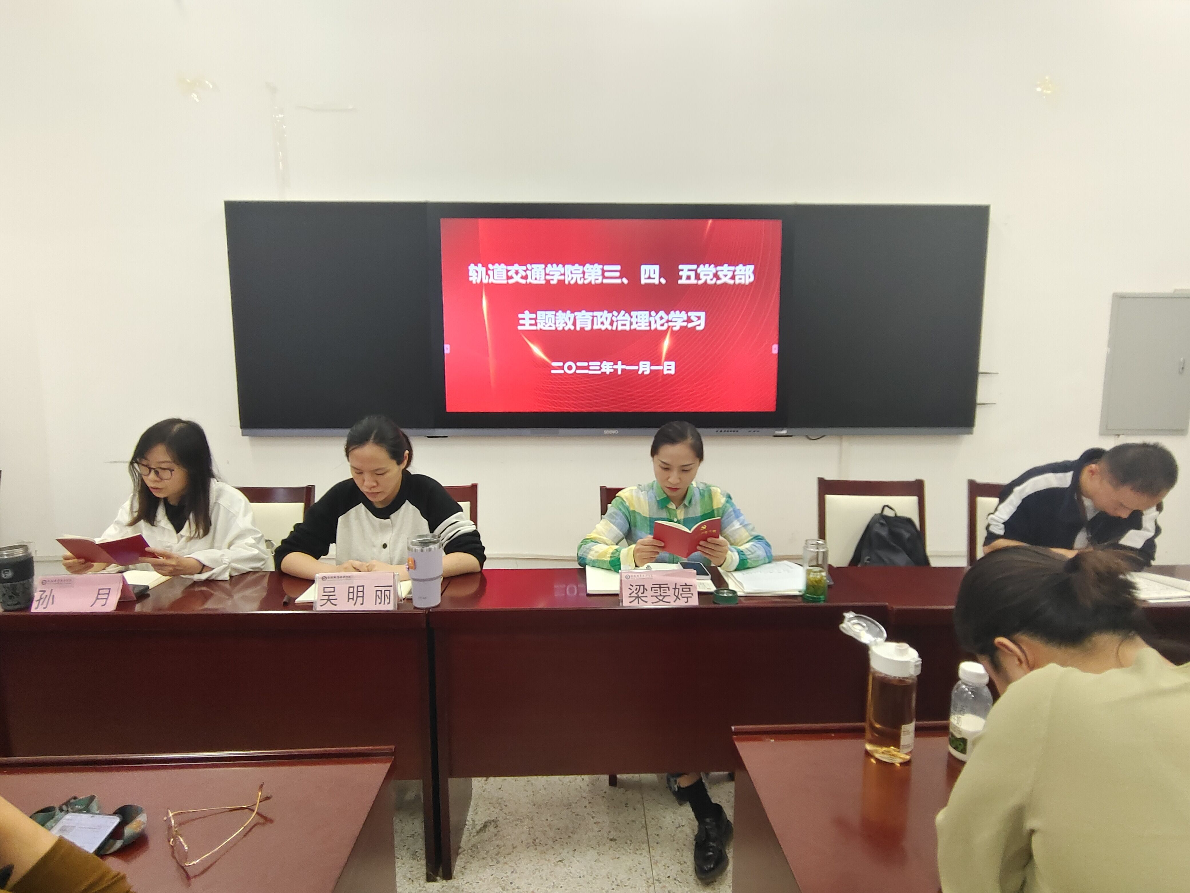 为坚持思想建党,理论强党,坚持不懈用习近平新时代中国特色社会主义思想凝心铸魂,将其转化为坚定理想、锤炼党性、指导实践、推动工作的强大力量,11月1日下午,轨道交通学院第三、第四、第五党支部开展主题教育集体学习活动,活动由轨道交通学院党总支副书记梁雯婷主持,三个党支部全体党员参加活动。