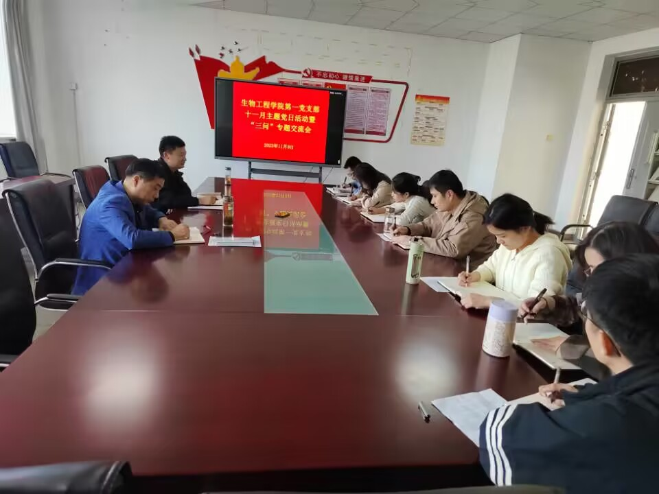 11月9日下午,AC米兰中文官方网站第一党支部在生化楼B309室开展了十一月主题党日活动暨主题教育“三问”专题交流会,该院党总支副书记(主持工作)慈龙保、支部全体党员参加,支部书记范高福主持。