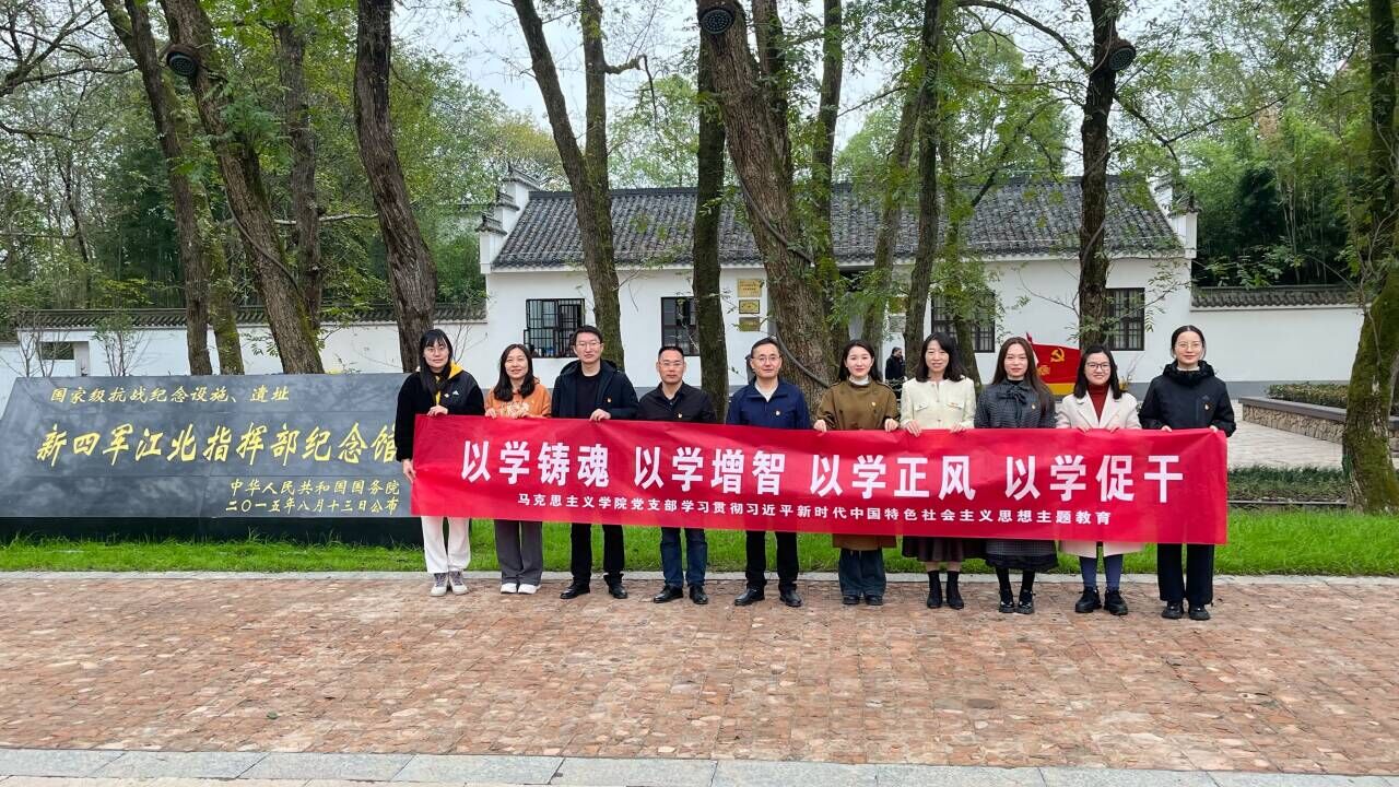 为扎实开展学习贯彻习近平新时代中国特色社会主义思想主题教育,追寻红色记忆,坚定理想信念,筑牢思想根基,传承革命精神。11月11日上午,马克思主义学院党支部书记王文飞带领学院全体党员赴庐江新四军江北指挥部纪念馆开展革命传统教育活动。