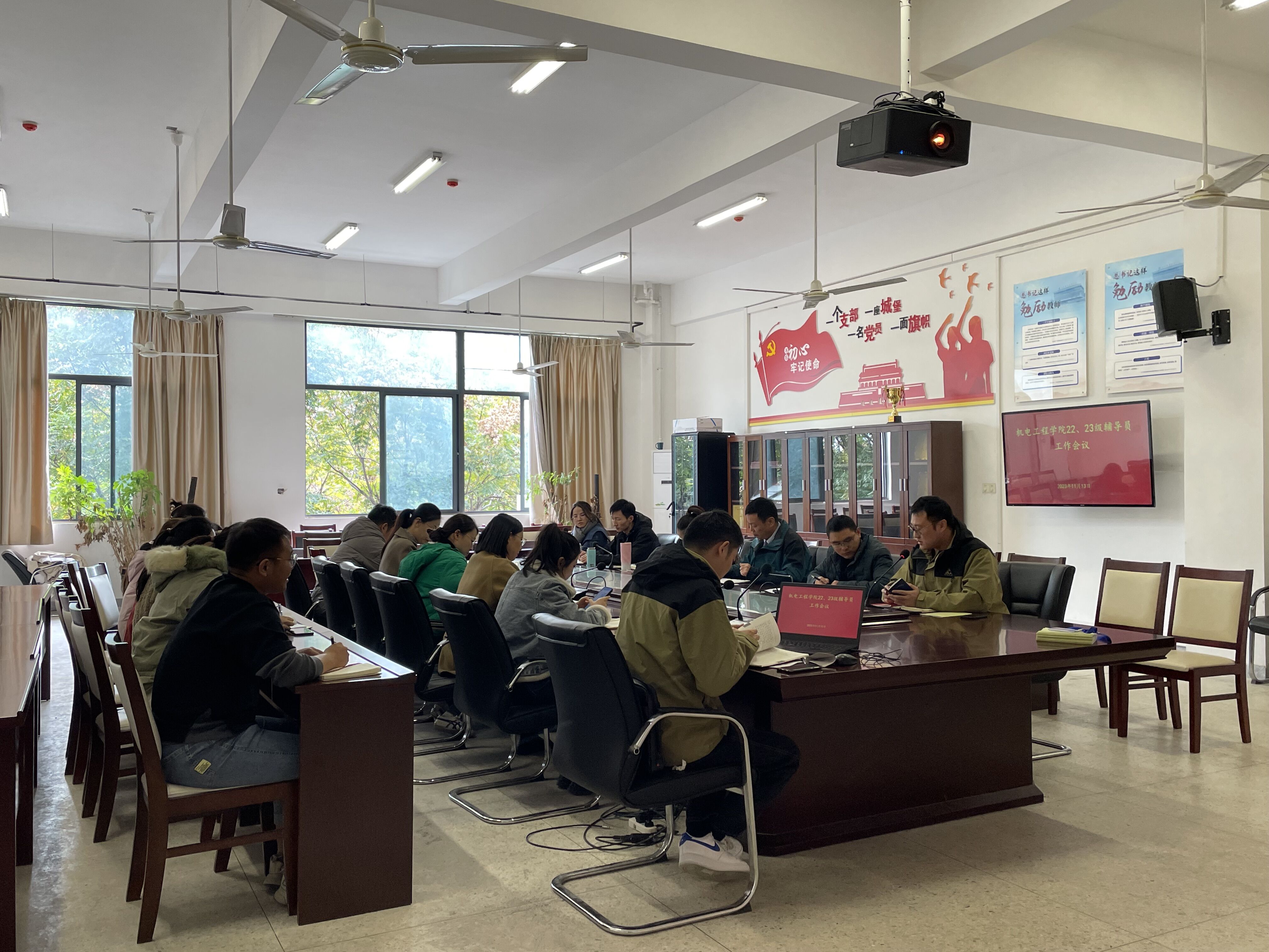 临近期中,为全面做好学院各项学生教育管理工作,11月13日中午,机电工程学院在机电楼二楼会议室召开22、23级辅导员工作会议。学院党总支副书记(主持工作)丁迎春、专职辅导员、22、23级辅导员参加了此次会议。会议由学管办主任徐婧婧主持。