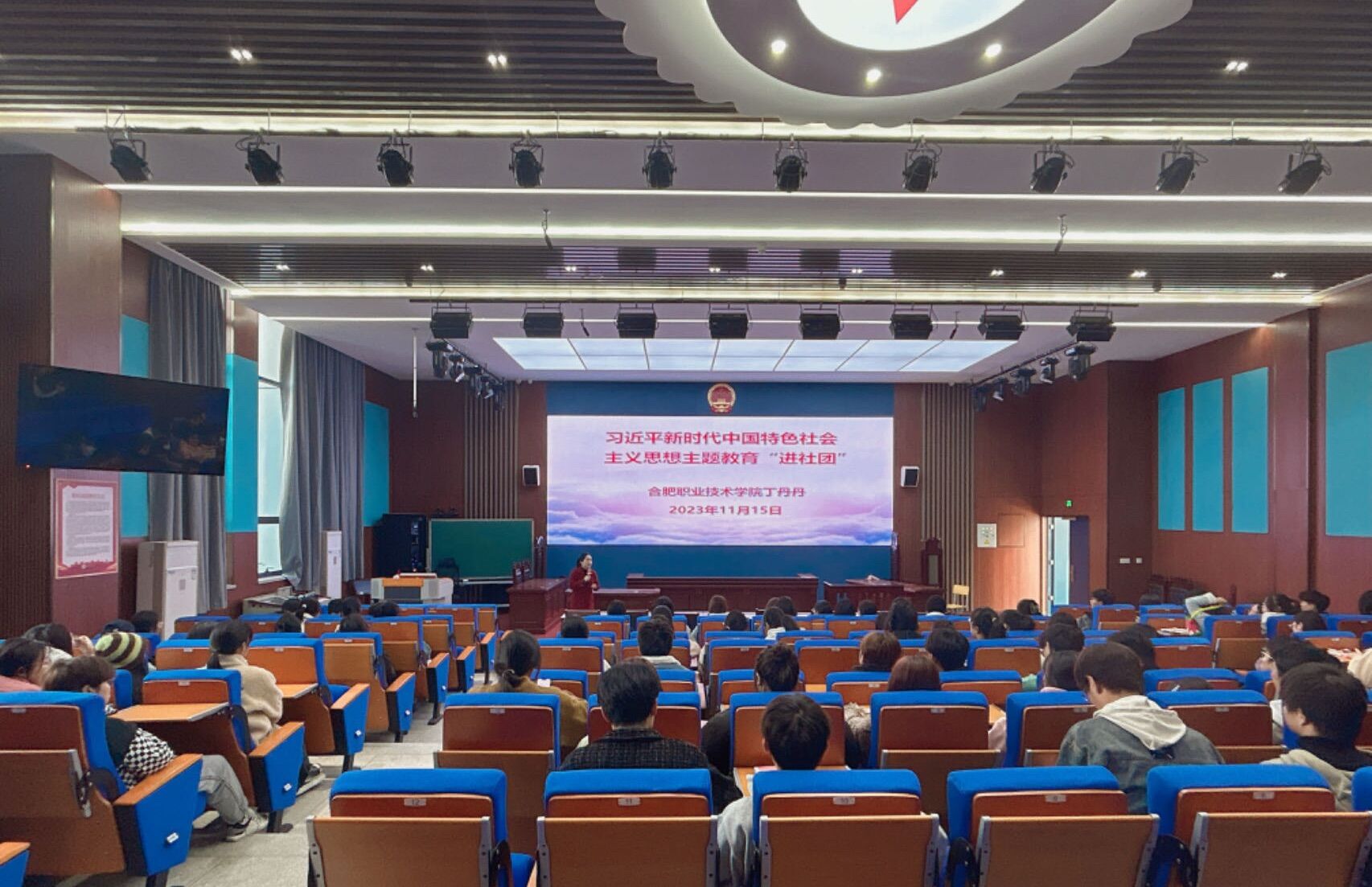 为深入开展学习贯彻习近平新时代中国特色社会主义思想主题教育,加强对广大青年同学的政治引领,扎实推动主题教育走深走实、见行见效,11月15日下午,AC米兰官网天平法学社和青年马克思主义学会在汇心湖校区模拟法庭开展了学习贯彻习近平新时代中国特色社会主义思想主题教育“进社团”活动,天平法学社指导教师丁丹丹作专题理论宣讲,马克思主义学院负责人、青年马克思主义学会指导教师杨帆及部分思政课教师参加了讲座,社团社员共120余人聆听了报告。