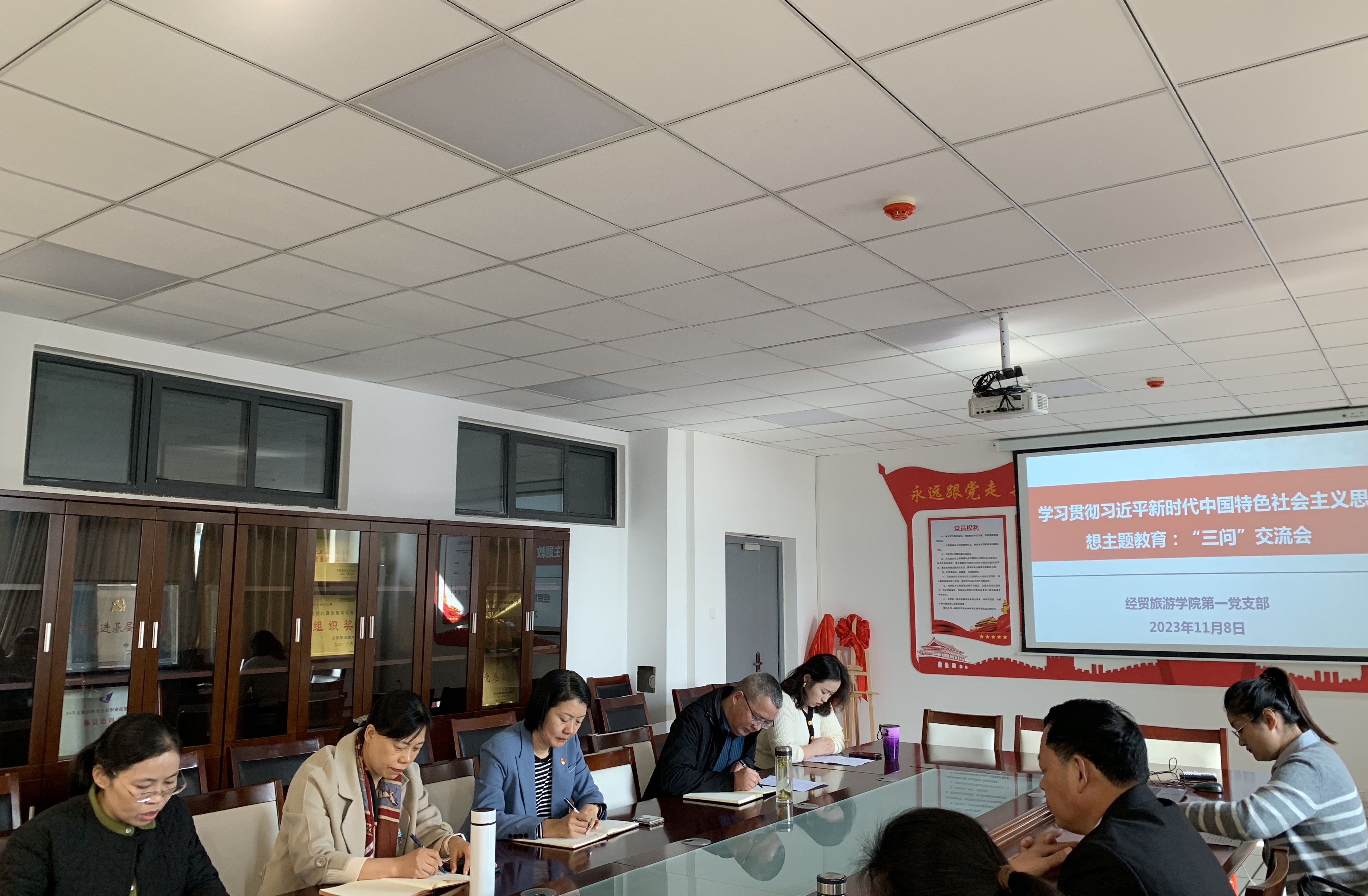 11月8日下午,经贸旅游学院第一党支部在学院三楼会议室召开主题教育“三问”交流研讨会。校党委委员、校党委副书记金飞燕、该院院长赵红参加会议,会议由学院第一党支部书记付晓兰主持。