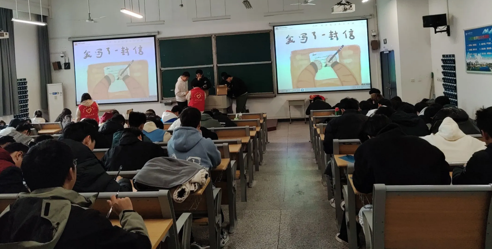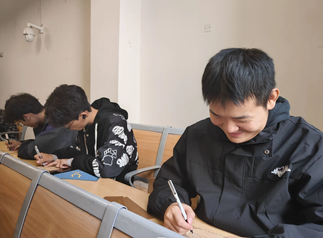活动现场氛围轻松愉悦,大家在部门精心准备好的信封中选择自己喜欢的款式,接过信纸,用手中的笔写下自己的“小幸运”“小烦恼”“小秘密”。同学们认真思考,专注于笔端,直到在用贴纸封上信封的那一刻,才从一缕缕思绪中抽离出来。