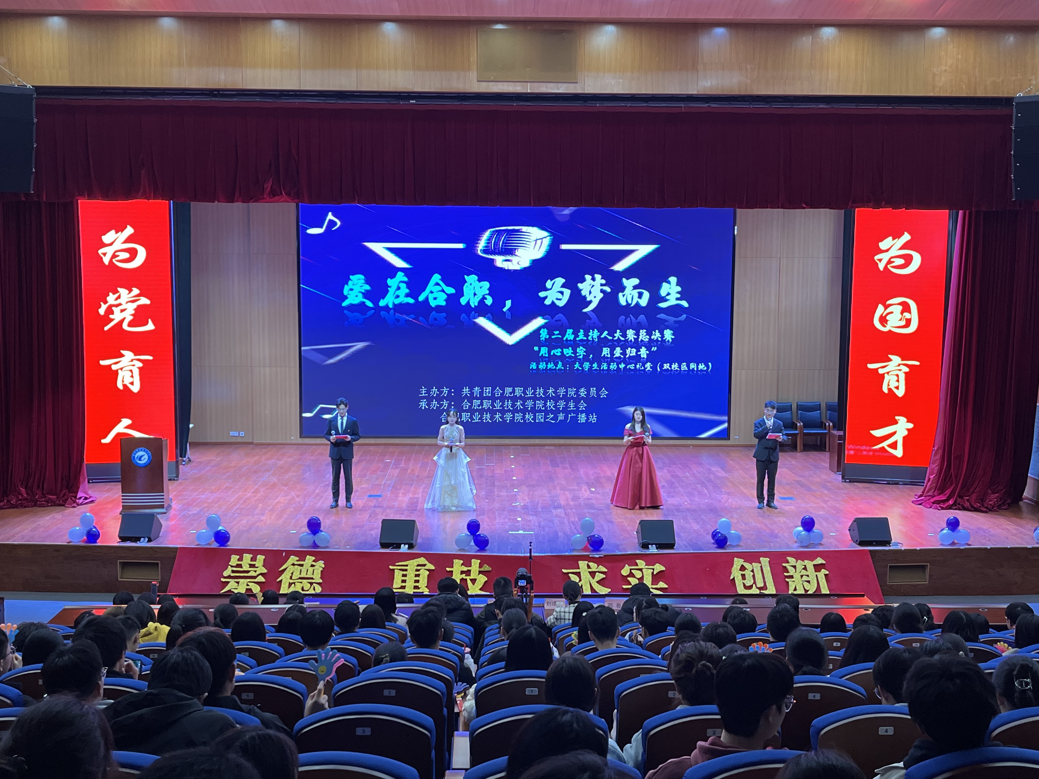 为展现当代大学生的精神面貌,张扬青春风采,11月22日下午,由校团委指导、校学生会和校广播站举办的“爱在合职 为梦发声”第二届校园主持人大赛总决赛在汇心湖校区大学生活动中心礼堂顺利落幕。