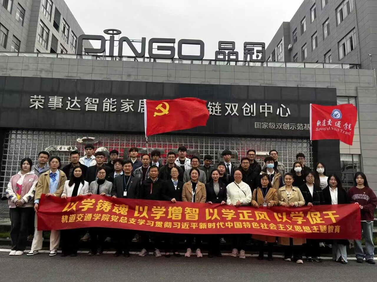 为深入开展学习贯彻习近平新时代中国特色社会主义思想主题教育,扎实开展调查研究,推动主题教育走深走实,引导全体党员强化理论武装、凝聚奋进力量。11月22日下午,轨道交通学院党总支赴荣事达智能家居全国双创示范基地开展主题党日活动,学院全体教职工及学生党员代表参加本次活动。