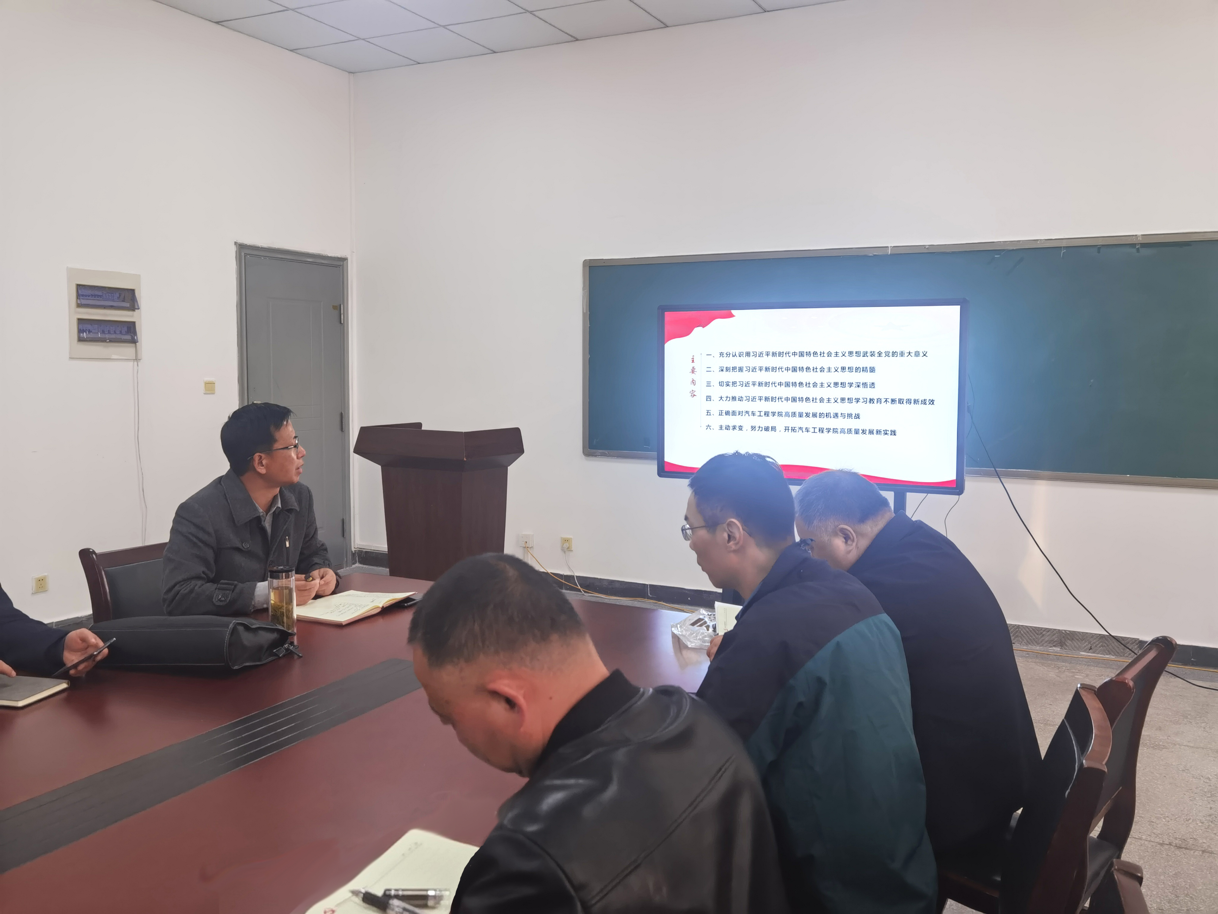 课上,王海从六个方面展开讲授:充分认识用习近平新时代中国特色社会主义思想武装全党的重大意义;深刻把握习近平新时代中国特色社会主义思想的精髓。王海书记倡导广大党员同志学习“公仆情怀”,主动担当,勇于作为;切实把习近平新时代中国特色社会主义思想学深悟透,要做到“真学真懂、真信真用”;大力推动习近平新时代中国特色社会主义思想学习教育不断取得新成效。“为学之实,固在践履”,王海强调,广大党员同志要将所学知识应用于实践,通过实际行动,才能更好地理解和掌握事物;正确面对汽车工程学院高质量发展的机遇与挑战。王海从产业布局和学校发展两个方面分析了汽车工程学院目前所面临的机会以及困境,要求汽车工程学院全体党员提高政治站位和凝聚力,增强自身本领,摒弃“不想干”的思想,而是“必须干”,为学院和学校发展献计献策;主动求变,努力破局,开拓汽车工程学院高质量发展新实践。王海强调,要深刻理解把握习近平新时代中国特色社会主义思想的重大意义、科学体系、丰富内涵、精神实质、实践要求,掌握习近平新时代中国特色社会主义思想的世界观和方法论,并运用到工作实际当中去,切实为汽车工程学院高质量发展献策出力。