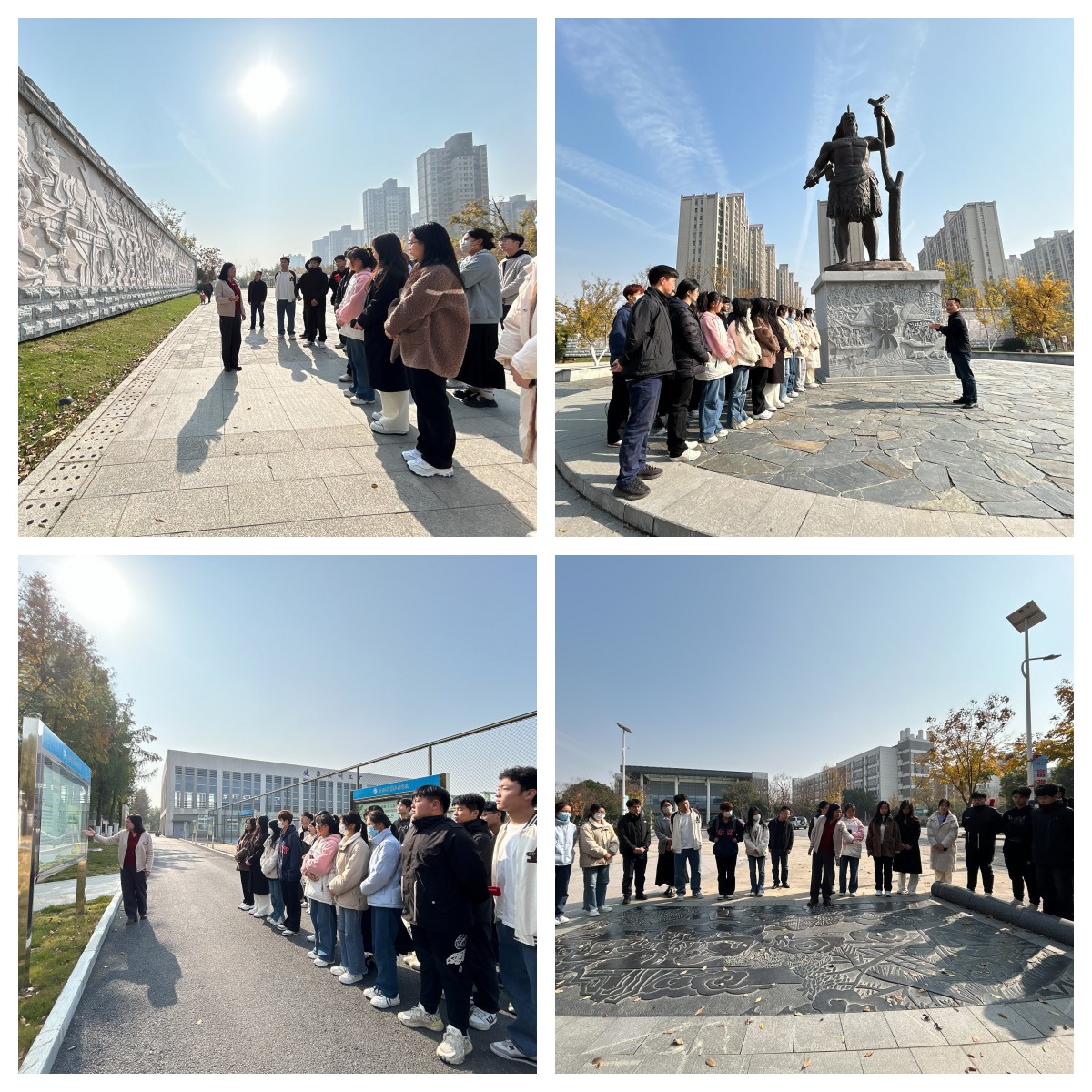 为深入开展学习贯彻习近平新时代中国特色社会主义思想主题教育,推动党的创新理论入脑入心入行,持续加强“大思政课”建设,推动实践教育基地与思政课教学深度融合,11月29日上午,马克思主义学院院长靳玉琼及部分思政课教师带领鼓山校区青年马克思主义学会成员参观了“有巢氏”文化广场,开展“探寻非遗之美 守护文化之根”的思政课实践教学活动。