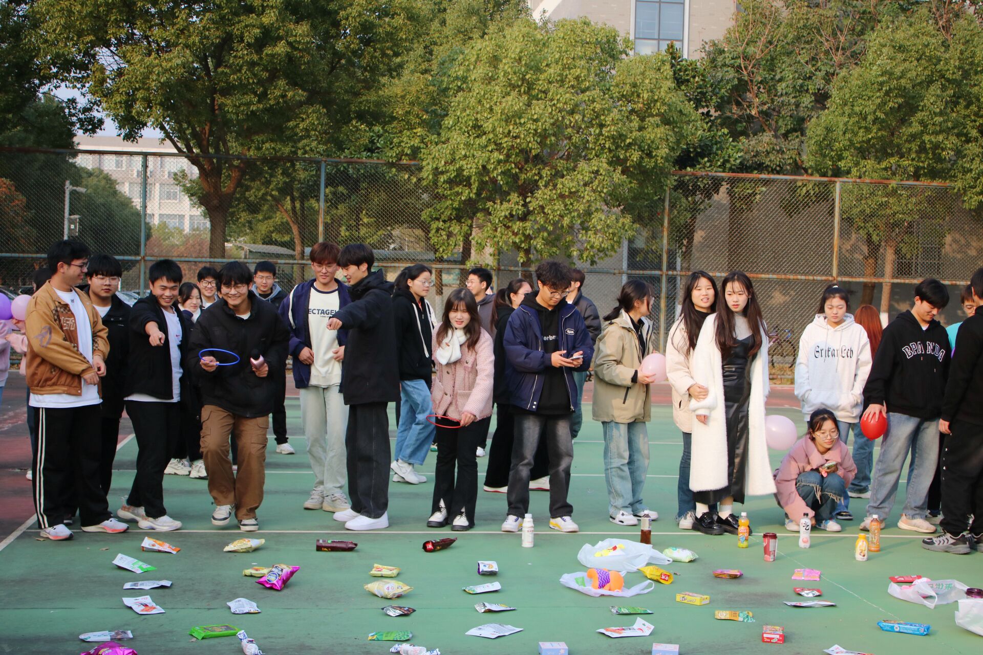本次活动以团体小游戏为主,同学们先后进行了“健身操”“套圈”“蒙眼互打”“无敌毛毛虫”等游戏。在王桂年老师带领下,同学们跳起节奏欢快的健身操,在这个过程中,同学们逐渐从疲惫的学习状态中解脱出来,感受到身体逐渐舒缓和放松;“无敌毛毛虫”游戏通过灵活穿梭、团队协作的方式,提升同学们的肢体协调能力,充分展现团队的默契配合;“蒙眼互打”游戏以声辨位,用现场笑声不断,放松了同学的心情;“套圈”游戏则考验同学们的平衡力,大家互帮互助,拉近了彼此间的距离。