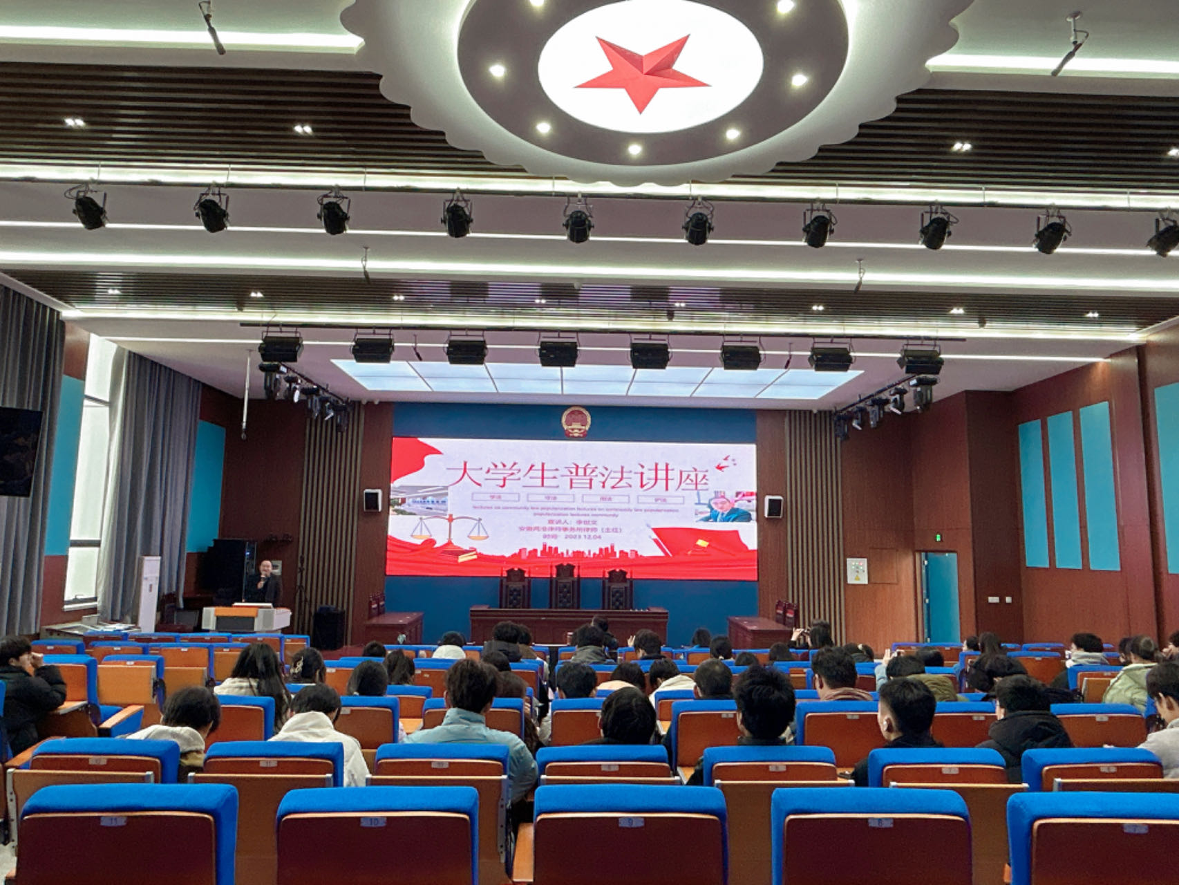 为深入学习贯彻习近平新时代中国特色社会主义思想,贯彻落实习近平法治思想和习近平总书记关于宪法法治教育的重要指示精神,推动习近平新时代中国特色社会主义思想进社团、进头脑,进一步加强“大思政课”建设,12月4日上午,马克思主义学院组织AC米兰官网天平法学社和青年马克思主义学会成员在汇心湖校区模拟法庭开展了一场“传承宪法文化 弘扬法治精神”法制宣传大讲堂活动。