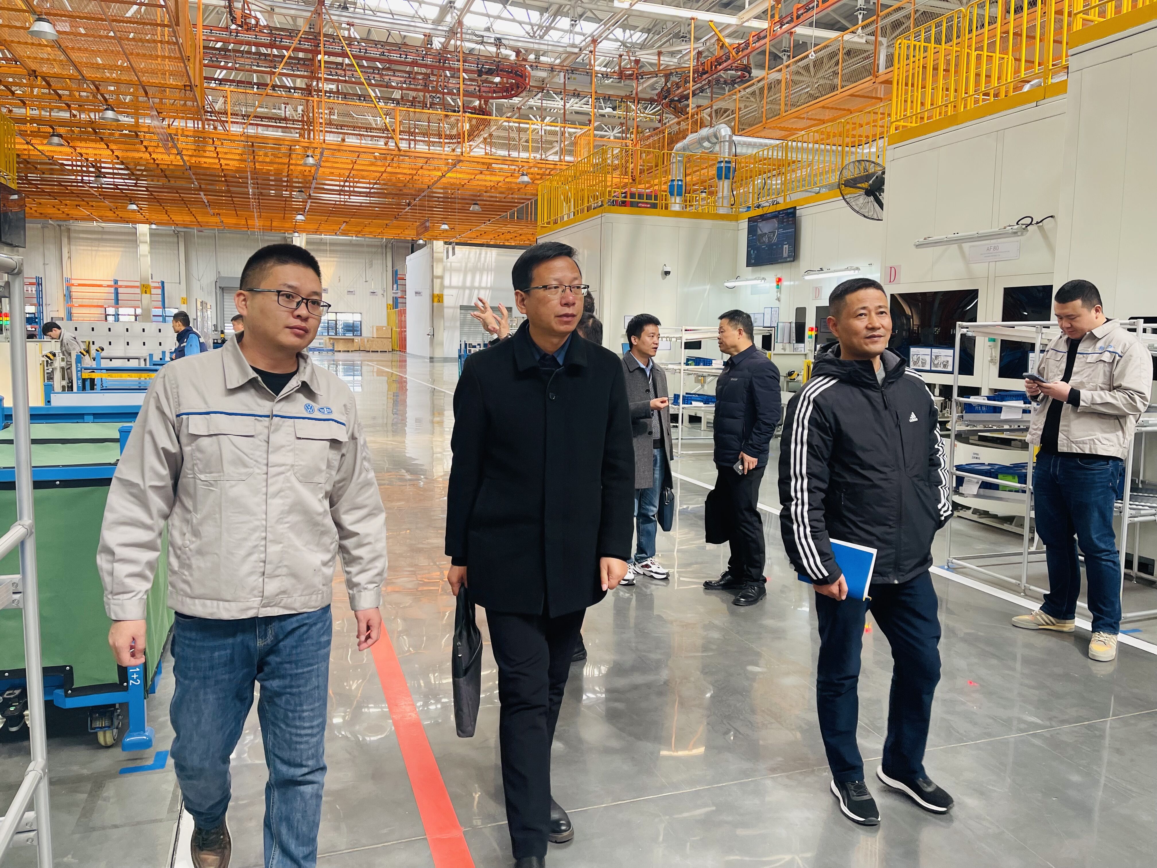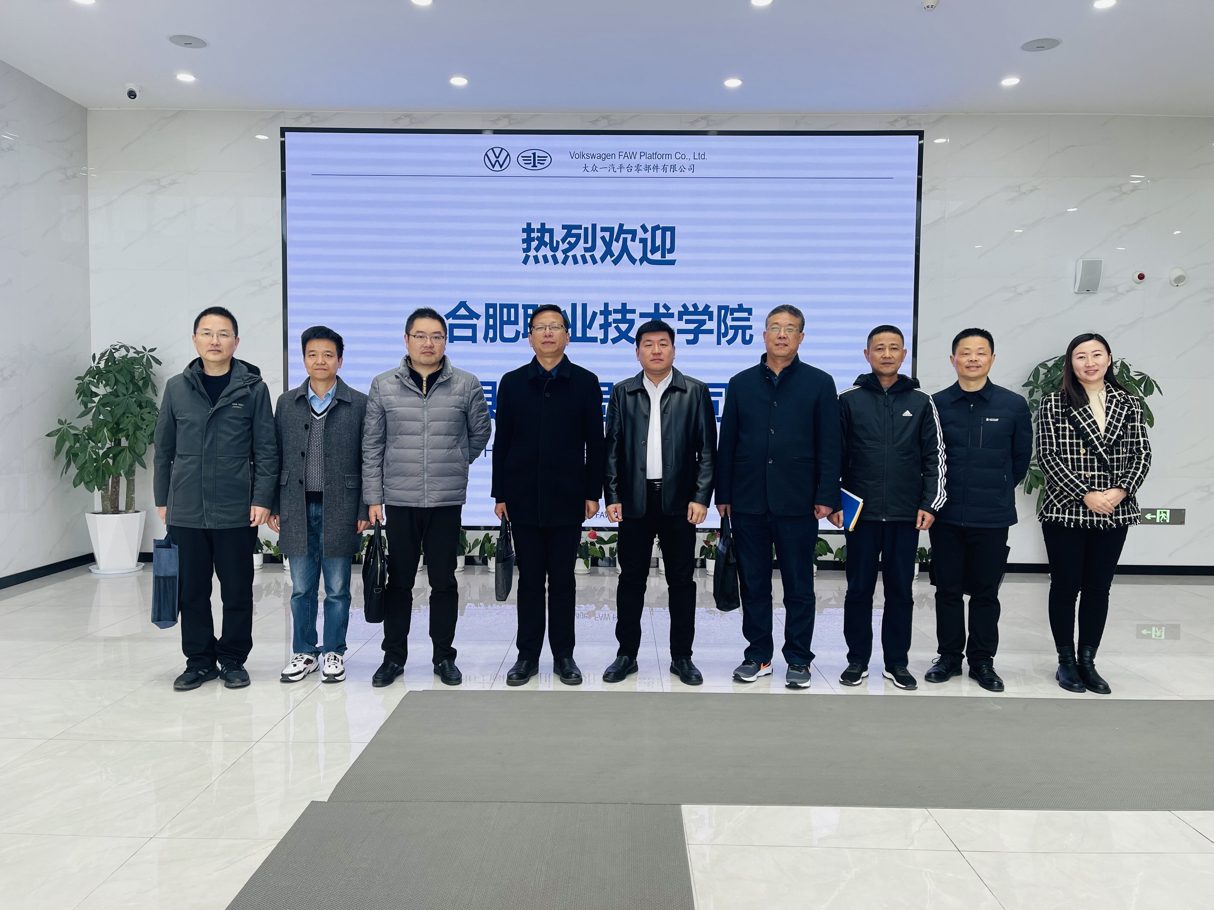 为服务安徽省汽车“首位”产业发展,深入了解企业人才需求状况,搭建校企合作平台,提升专业建设水平和人才培养质量,拓宽毕业生就业渠道,12月5日,校党委委员、办公室主任、汽车工程学院党总支书记王海等一行赴大众一汽平台零部件(安徽)有限公司开展访企拓岗工作,肥西县人社局副局长陈鹄、公司外方厂长WISNY MICHEL、中方厂长韩维信等陪同考察调研。