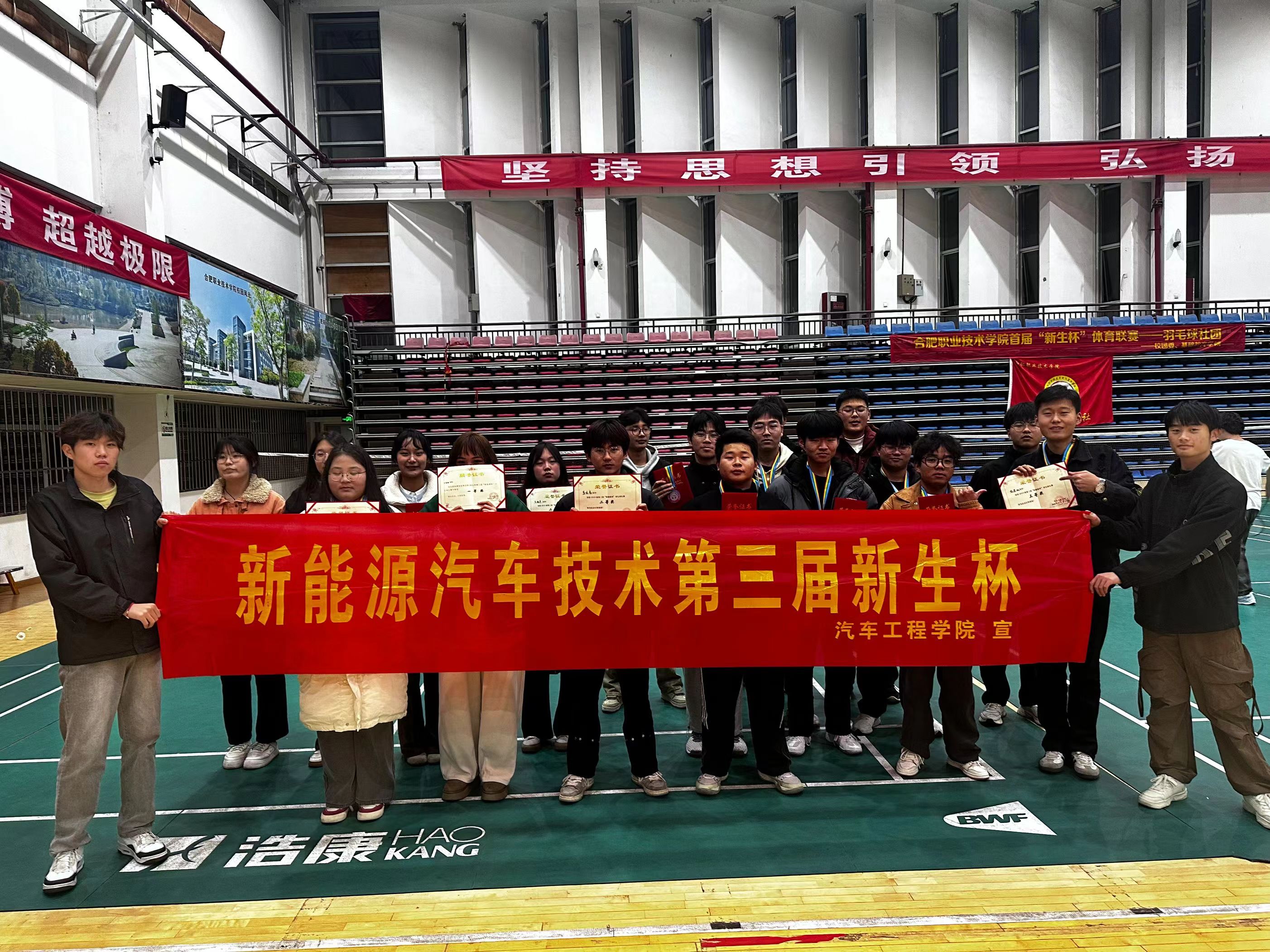 经过一轮又一轮的激烈比拼,最终由来自23新能源2班的黄坤鹏获得男生组第一名,23新能源3班的王寒钰获得女生组第一名,本次“新生杯”羽毛球赛精彩落幕。
