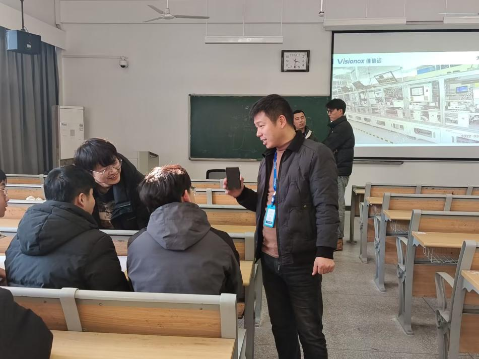 此次宣讲会,维信诺招聘负责人向同学们介绍了公司基本情况,招聘岗位要求、薪资待遇以及岗位的发展前景等。招聘部门技术总监也对岗位所需求的技术技能及应用场景进行了说明。