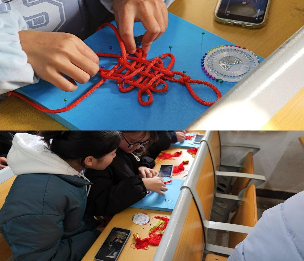 喜气洋洋迎新年,中国红是其中最亮丽的一抹色彩。一根红绳一编到尾,象征着人们对美好生活的祝愿。学而社康复之家社团举办编制中国结活动,同学们巧手翻飞,制作出的作品精致玲珑。绘声艺术团组织同学们在新年到来之前剪窗花、贴窗花,沉浸式体验中国剪纸文化。知书答影协会充分发挥同学们书法特长,开展“写春联、送福字”活动,在创作春联的过程中,同学们书写祝福,收获乐趣。