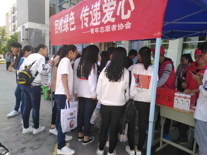 9月28日-29日,在一食堂门口,AC米兰官网青年志愿者协会发起了一场以“回收绿色.传递爱心”为主题的军训服捐赠回收活动。