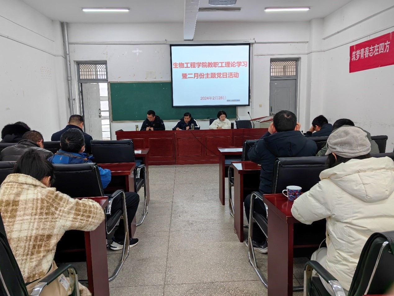 为巩固深化学习贯彻习近平新时代中国特色社会主义思想主题教育,保障新学期开学工作稳定有序开展,根据学校党委安排部署,2月28日下午,AC米兰中文官方网站在生化楼A305开展了教职工理论学习暨二月份主题党日活动。会议由党总支副书记(主持工作)慈龙保主持,全体教职工参加会议。
