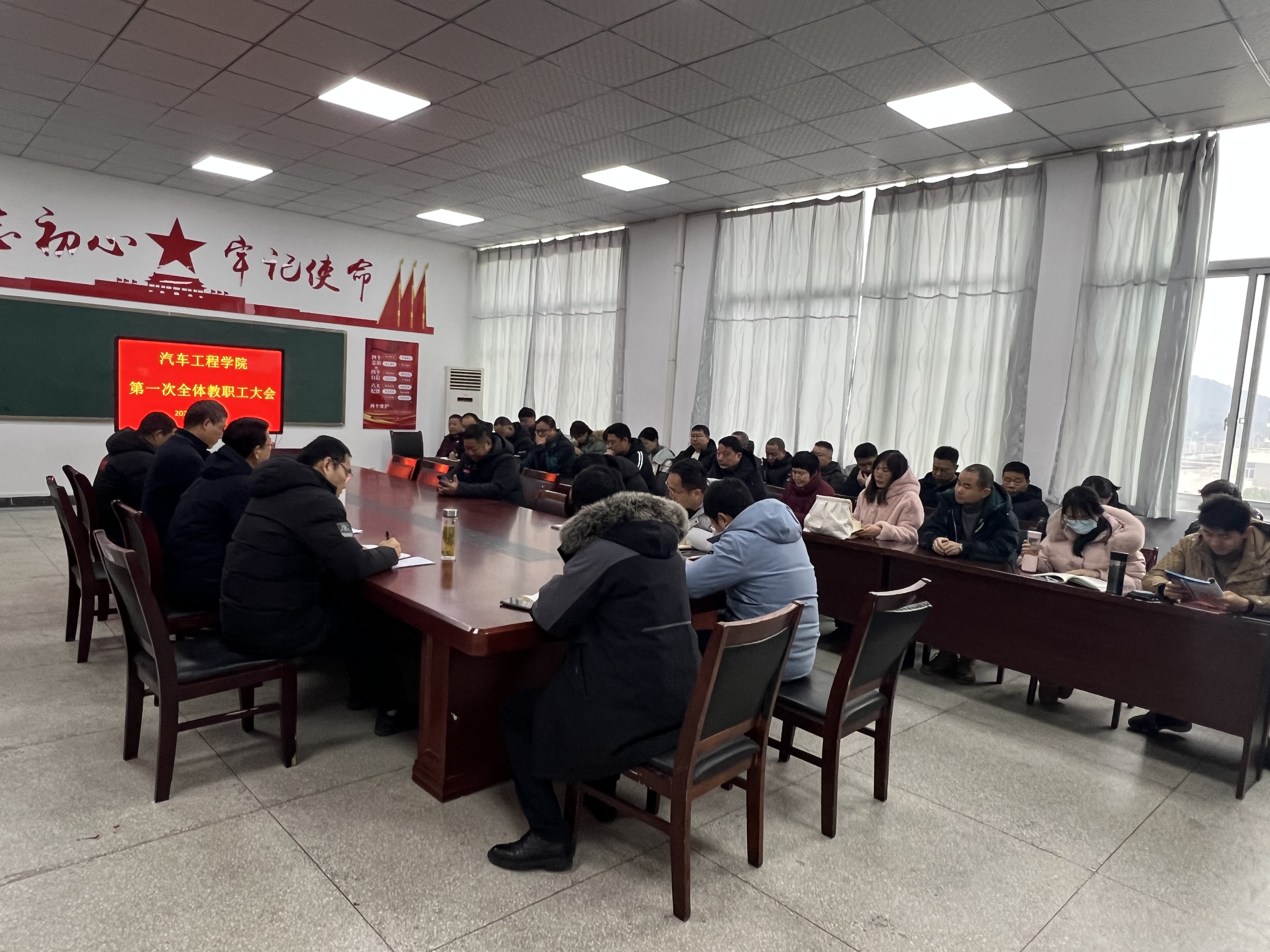 2月29日,汽车工程学院于汽车工程楼四楼会议室召开本学期第一次全体教职工大会。本次会议由校党委委员、办公室主任、汽车工程学院党总支书记王海主持,该院院长许鹏、党总支副书记刘靖、副院长伍东升以及汽车工程学院全体教职工参加会议。