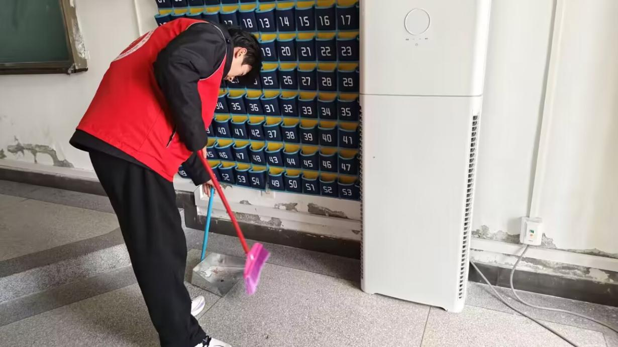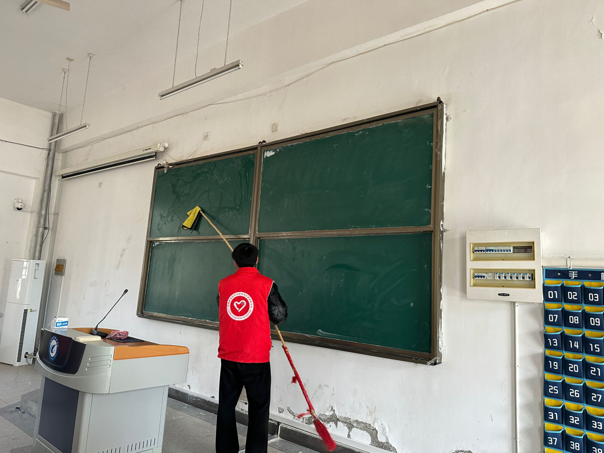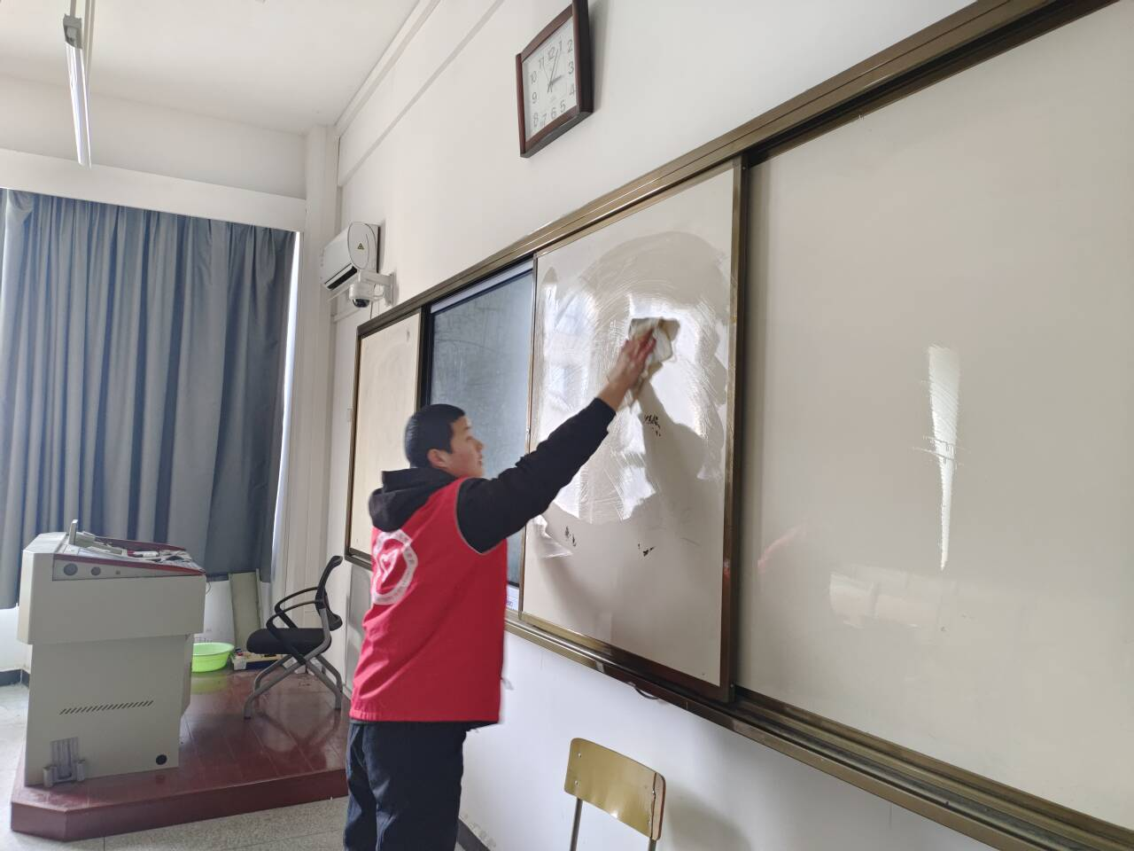 活动中,志愿者们自发分组,用扫帚、拖把、抹布等工具对教室、走廊进行全面清理,力争做到卫生无死角,垃圾无残留。劳动中,大家互帮互助、配合默契,充分发挥不怕脏不怕累的精神,变身“清洁卫士”,从“心”开始,从细着手,全方位清理打扫教室,给同学们提供了一个干净舒适的学习环境。