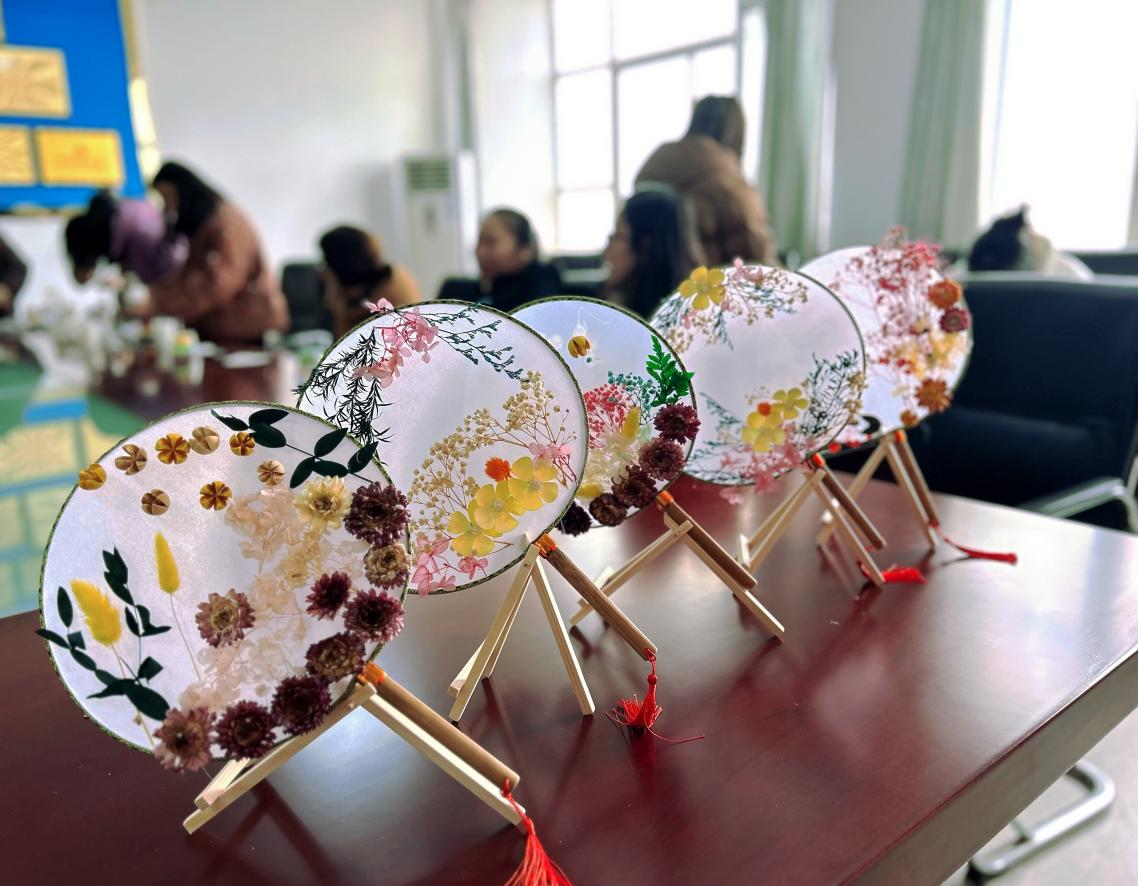 随后开展了女职工手工制作活动。大家充分发挥自己的想象力和创造力,巧手翻飞,将一朵朵干花点缀在团扇上,用专注和耐心描绘出一幅幅精美绝伦的图画,在一扇扇清风中表现女性雅韵。在制作沙画香薰蜡烛时,搅拌调色、固定蜡芯、滴入精油、叠加颜色、静置散香,一杯杯风景如画般的香薰蜡烛一气呵成。