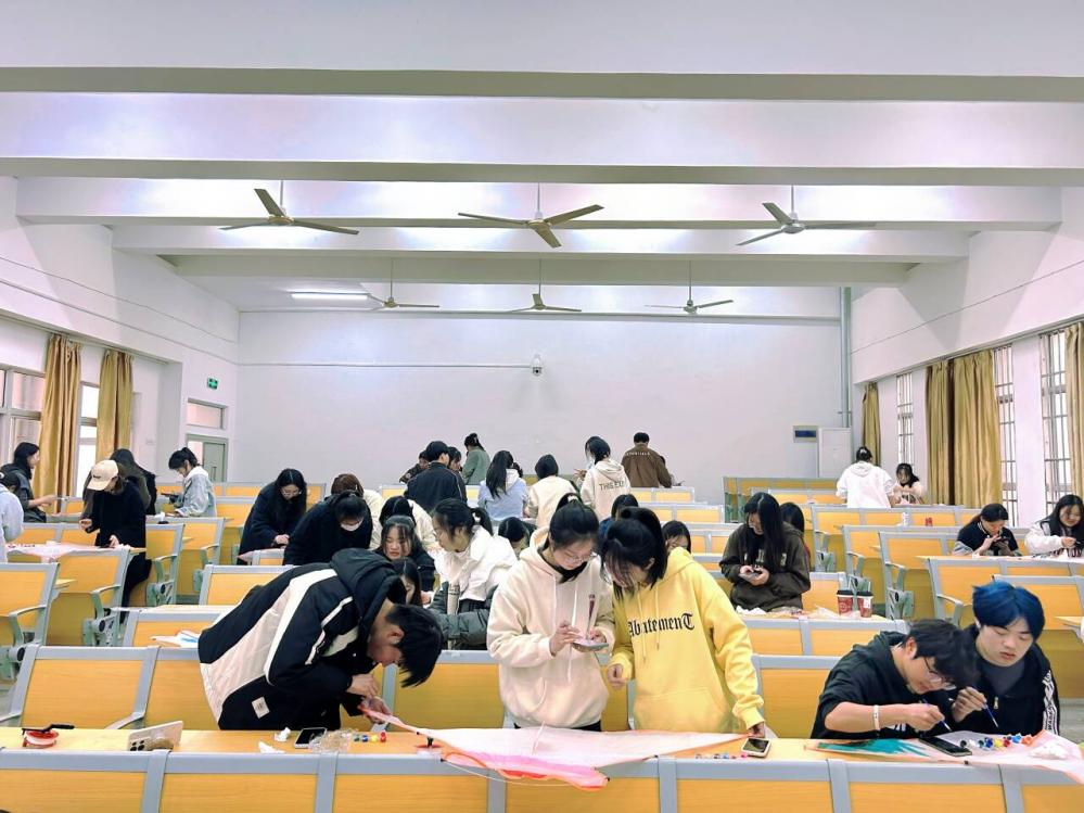 本次活动共有70多名同学参与,他们以“青春、春天”为主题在空白风筝上进行DIY彩绘创作。在有限的时间里,各组成员齐心协力、大胆创作,共同动手、动脑,完成了一幅幅送给春日天空的作品。绘制完毕,所有的风筝小队来到操场放飞风筝。在微风的吹拂下,23条蝴蝶形状的风筝在空中翻腾飞舞,将操场的天空装点得如诗如画,引来周围的同学纷纷驻足。