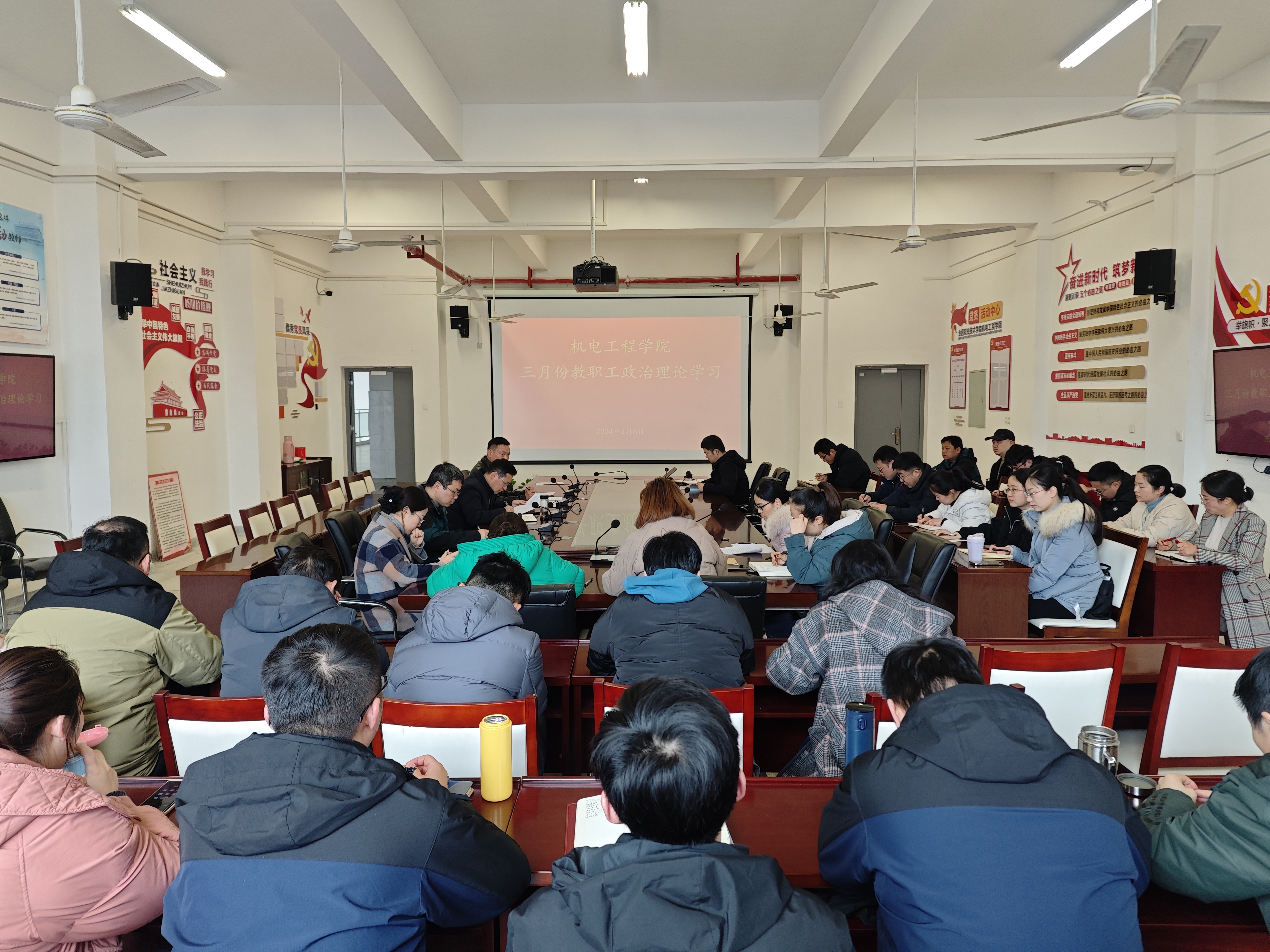 3月13日中午,机电工程学院在机电楼二楼会议室组织召开三月份教职工政治理论学习暨工作会议,学院全体教职工参加,会议由该院党总支副书记(主持工作)丁迎春主持。